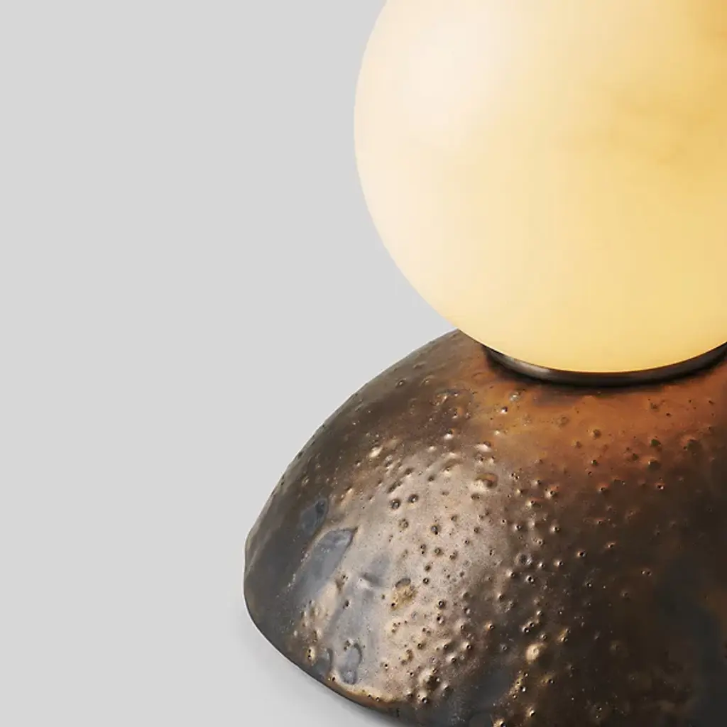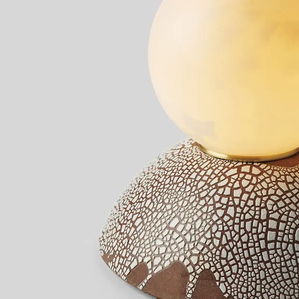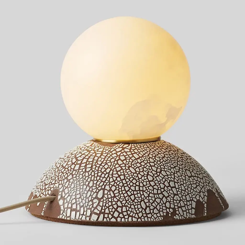 From designer Rosie Li comes the artful, texture-rich design of the Pilar Alabaster Table Lamp by Rosie Li Studio. This table lamp showcases a beautiful, globe-shaped shade that houses a vibrant LED array. The body of your lamp is composed of a rich blend of cork and brass. The lamp's base takes on the shape of a dome, allowing for easy placement on tables while showcasing a generous amount of artisanal detail. The Pilar Table Lamp is versatile in scale, adding a punch of light and decoration across various rooms.