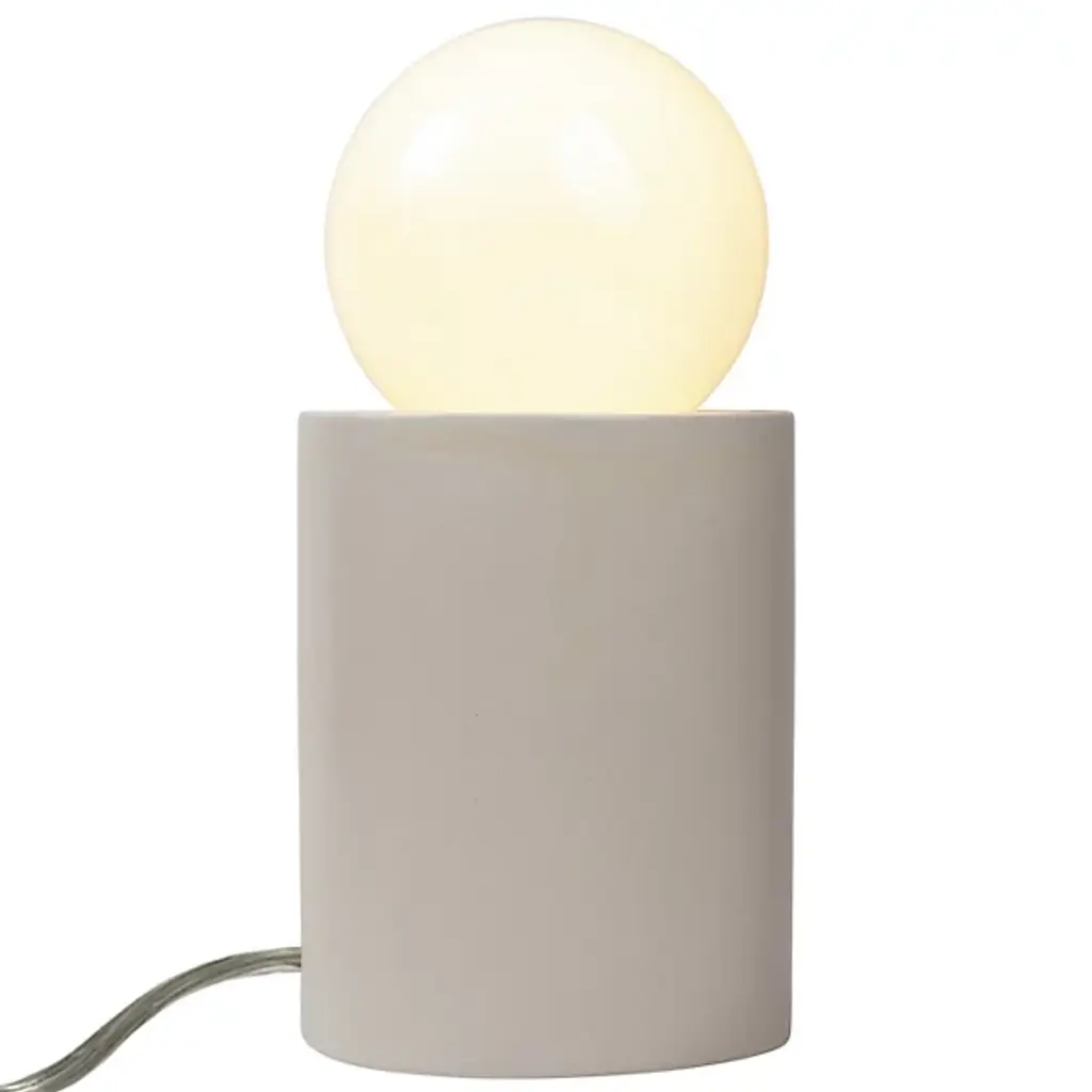 Add a refreshing glow of warm light to any indoor space with the Pillar Table Lamp from Justice Design. This portable, plug-in table lamp sports a unique design and a hand cast, textured, and finished construction, perfect for a wide variety of contemporary design schemes. This short pillar table lamp is an exceptional complimentary light fixture and an easy way to add extra light to your hallway, living room, or home office space.