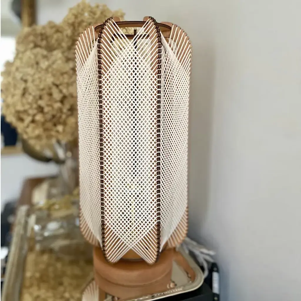The Pillsi Base Table Lamp by LaFabLight brings a warm, handcrafted charm to any room. Each one is made to order, with natural white cotton thread carefully braided by hand over softly curved wooden arches. When illuminated, it casts gentle patterns of light and shadow, adding a cozy, artistic glow to your space. Made from wood sourced in French forests, this lamp beautifully blends thoughtful design with timeless artisanship for a piece that feels truly special.
