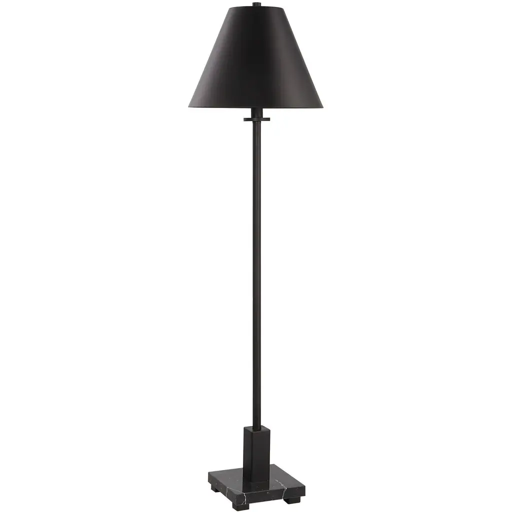 The Pilot Buffet Lamp Displays A Slender Metal Construction Finished In Satin Black With A Coordinating Metal Empire Shade And An Elegant Black Marble Foot With Natural White Veining.