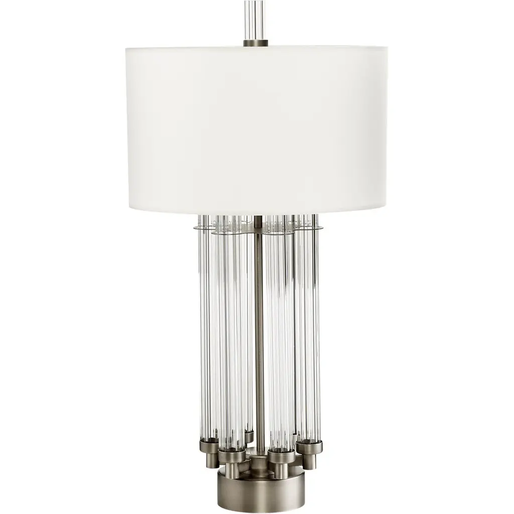 Channel the metallic modernity of the Pimlico Table Lamp into your home dÃcor. The sleek lamp base with nickel finish has a sculptural exterior with smoke glass rods that encourages an enchanting, atmospheric ambience.