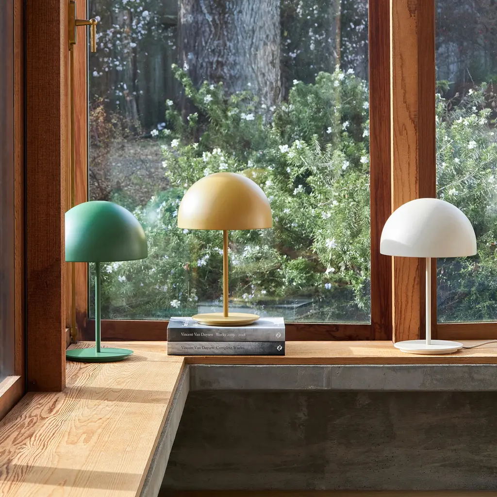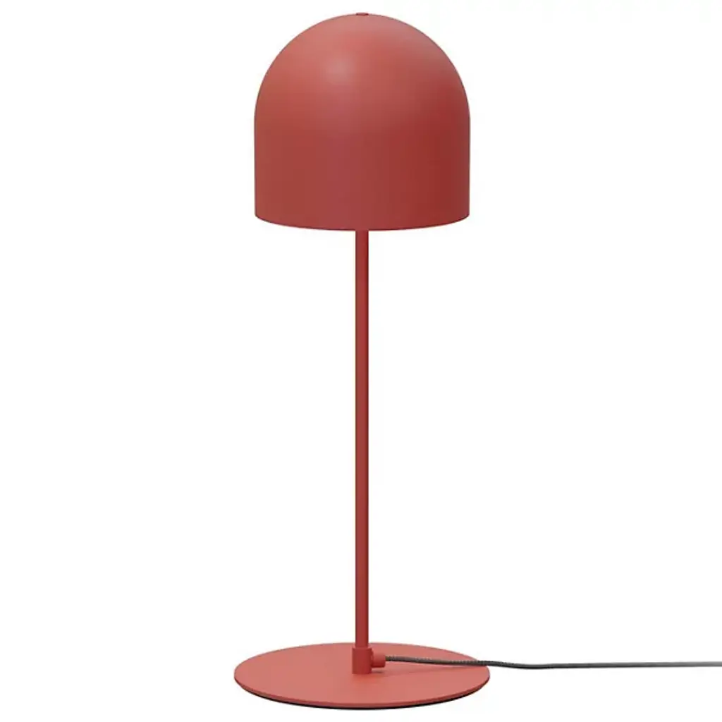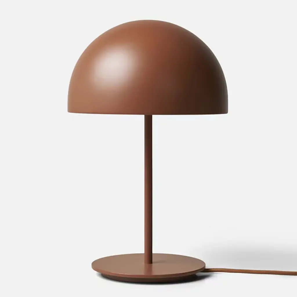 The Pin table lamp’s playful aesthetic is reminiscent of drawing pins, a reference echoed in the palette of rich tones. For versatility, the range also includes more subtle, understated hues. The design is intentionally pared back, focusing on essential elements. The half-dome shade is paired with a layered, laser-cut steel base. The cable is discreetly routed through its pole to a colour-matched braided cord with an in-line switch. A soft, downward pool of light is cast from the white inner shade. The switch features a dial dimmer for easy adjustment of the LED bulb’s brightness. Designed in New Zealand by David Moreland and Nikolai Sorensen. Features