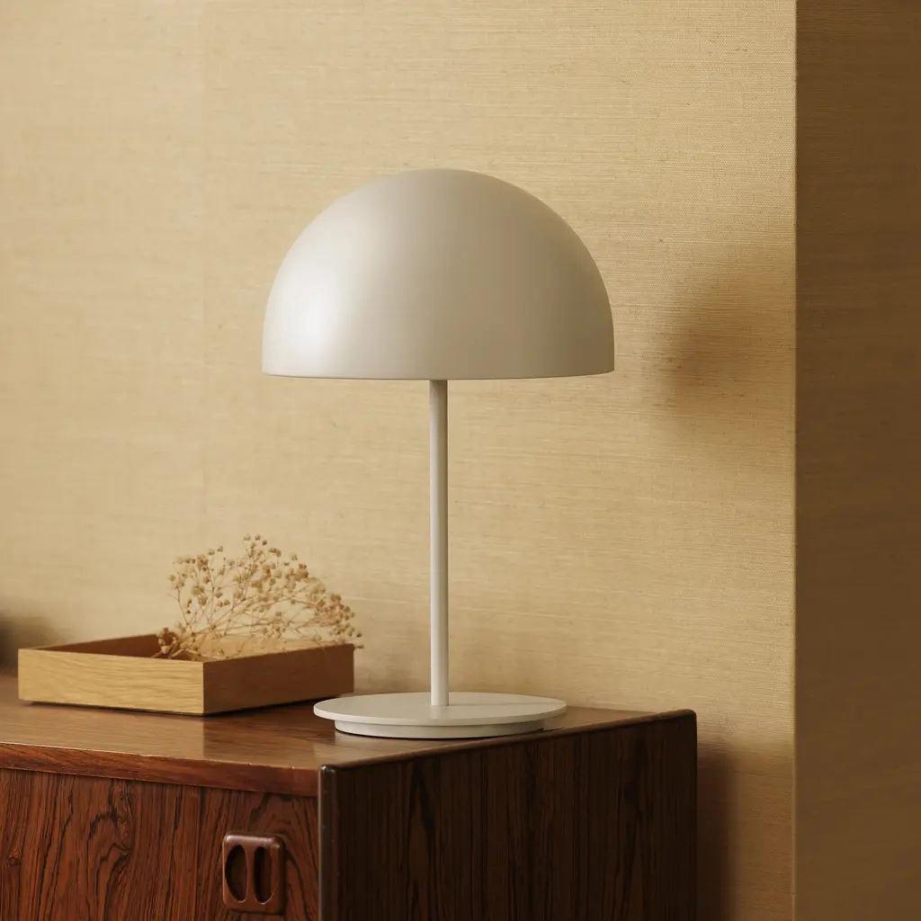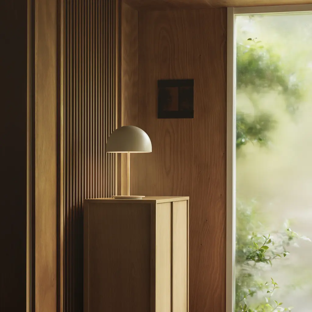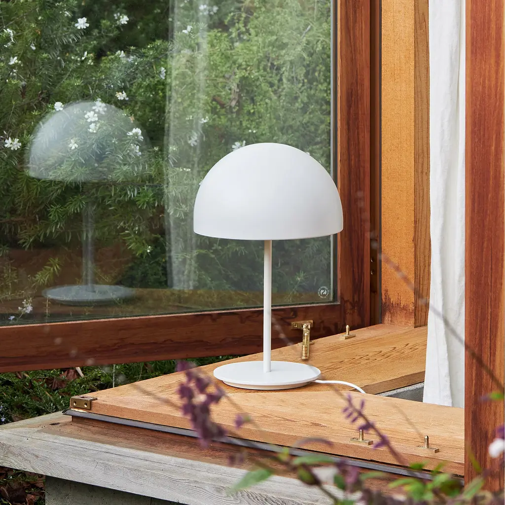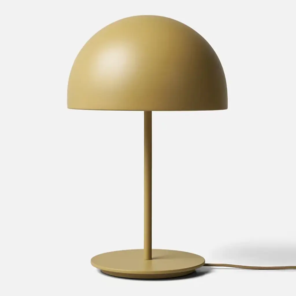The Pin table lamp’s playful aesthetic is reminiscent of drawing pins, a reference echoed in the palette of rich tones. For versatility, the range also includes more subtle, understated hues. The design is intentionally pared back, focusing on essential elements. The half-dome shade is paired with a layered, laser-cut steel base. The cable is discreetly routed through its pole to a colour-matched braided cord with an in-line switch. A soft, downward pool of light is cast from the white inner shade. The switch features a dial dimmer for easy adjustment of the LED bulb’s brightness. Designed in New Zealand by David Moreland and Nikolai Sorensen. Features