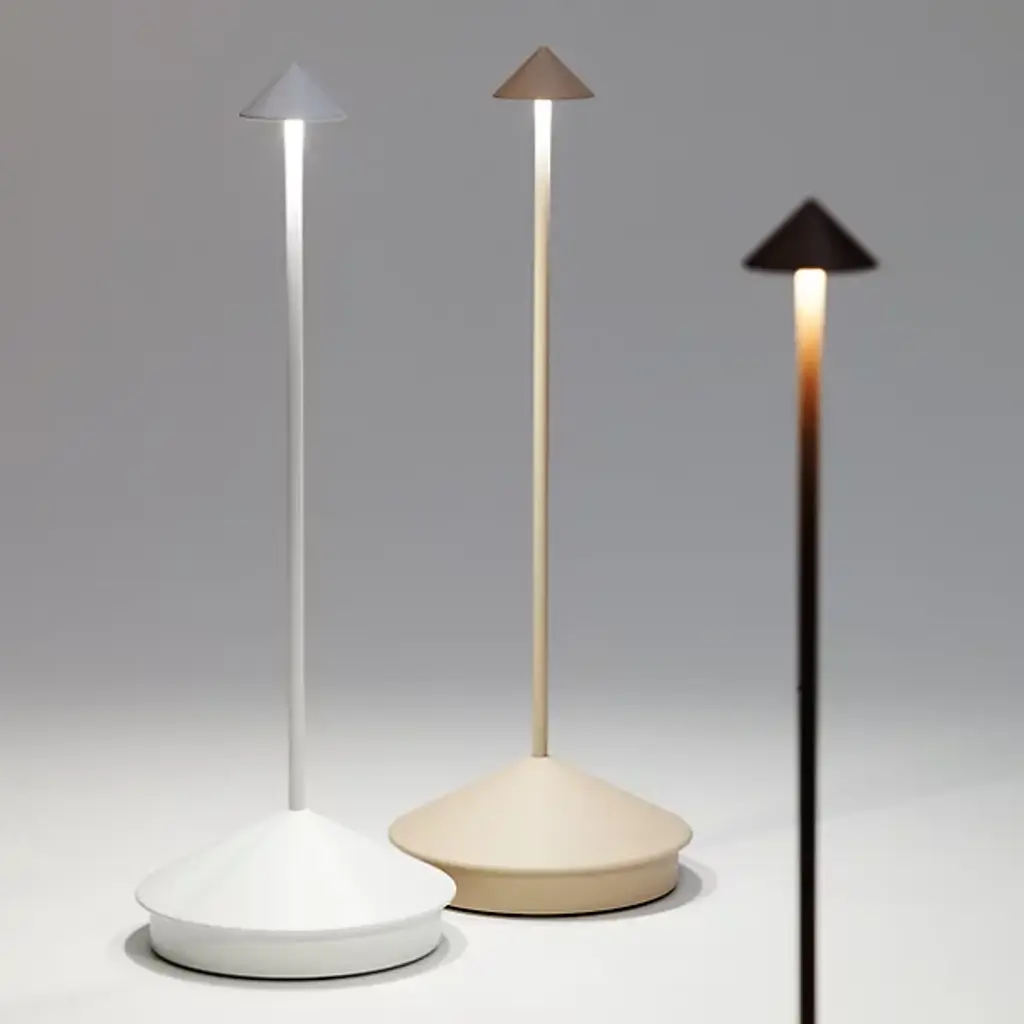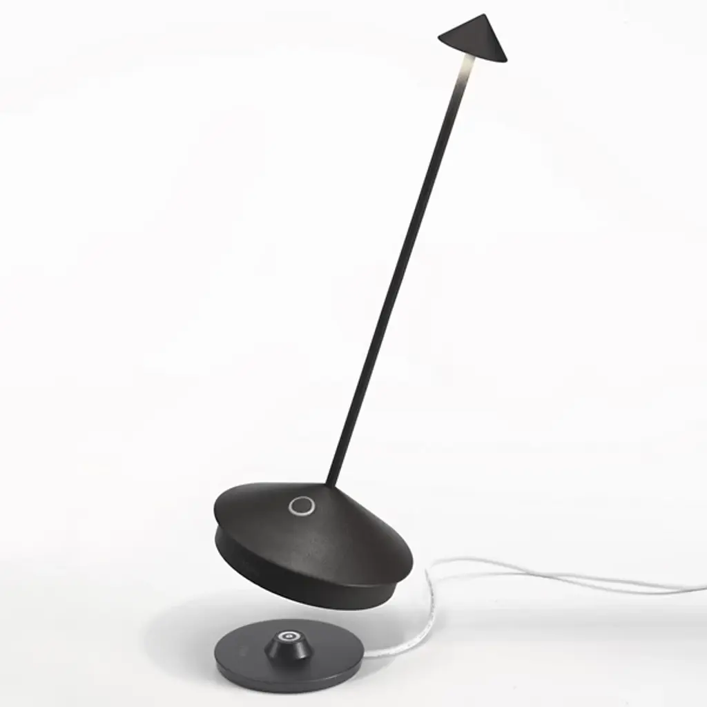 Bring a clean glow to the smaller spaces in your home with the Pina Pro Rechargeable LED Table Lamp from Zafferano America. A wide base made of die-cast aluminum acts as a sturdy anchor for the piece. It slightly angles inward, leading to a thin rod that rises up and ends with a small polycarbonate shade that contains an integrated LED. An inductive charging base makes this piece wireless and portable, allowing it to spread its even, bright layer of light throughout the home with ease.