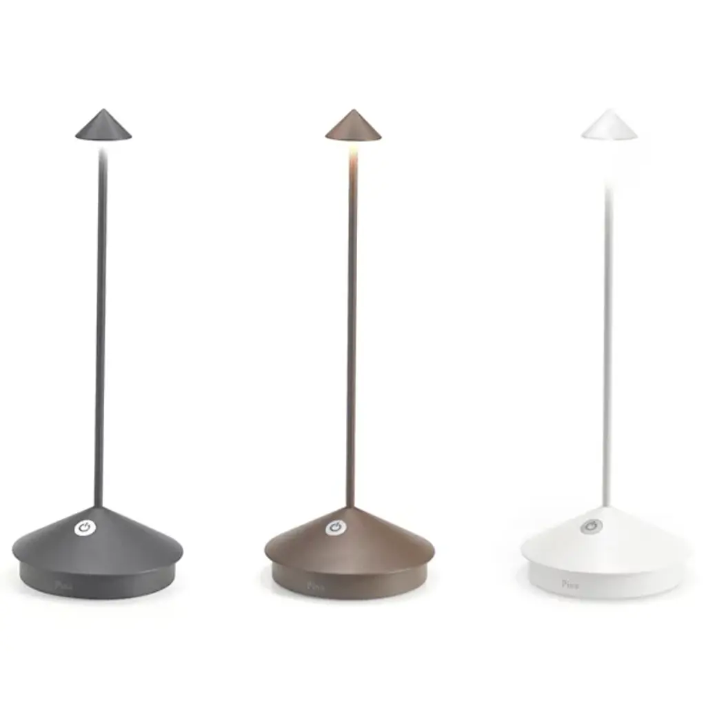 Bring a clean glow to the smaller spaces in your home with the Pina Pro Rechargeable LED Table Lamp from Zafferano America. A wide base made of die-cast aluminum acts as a sturdy anchor for the piece. It slightly angles inward, leading to a thin rod that rises up and ends with a small polycarbonate shade that contains an integrated LED. An inductive charging base makes this piece wireless and portable, allowing it to spread its even, bright layer of light throughout the home with ease.