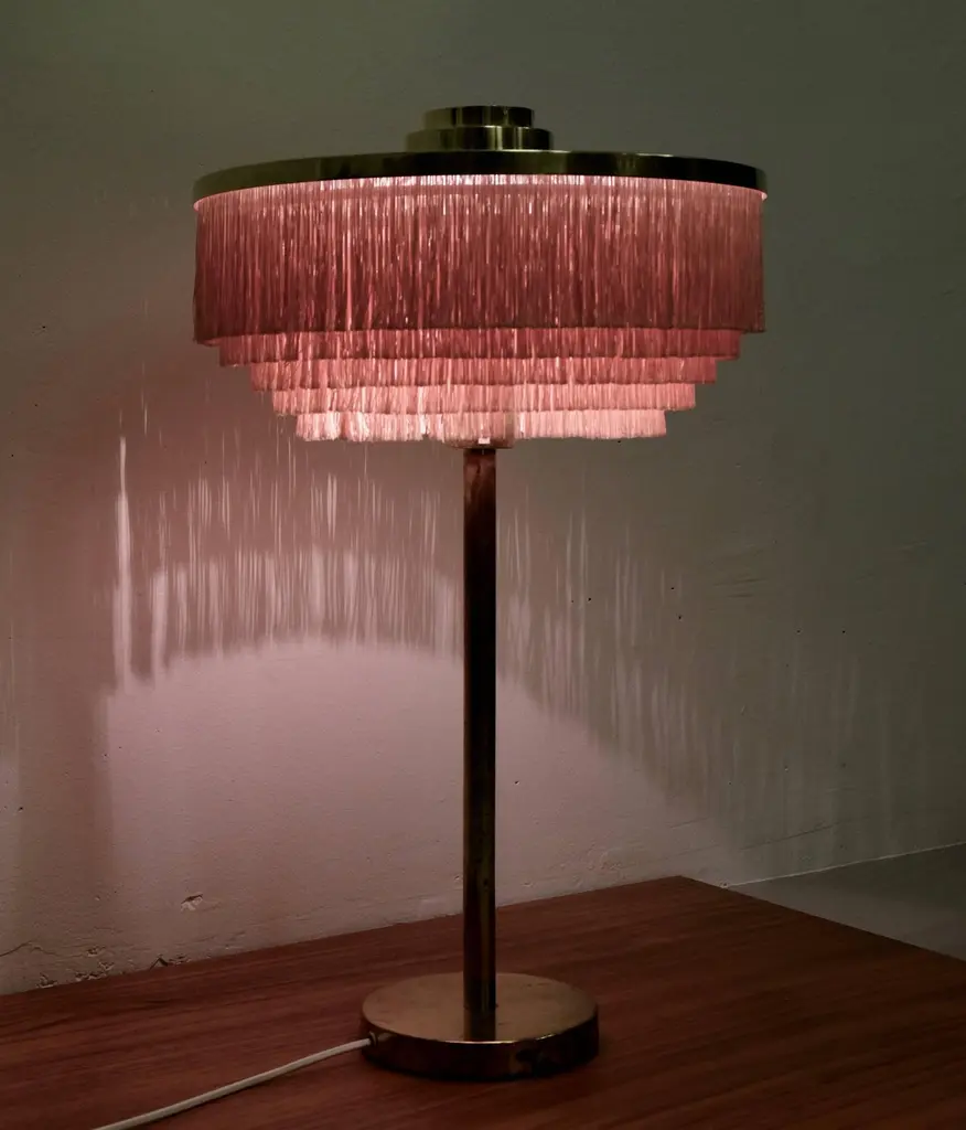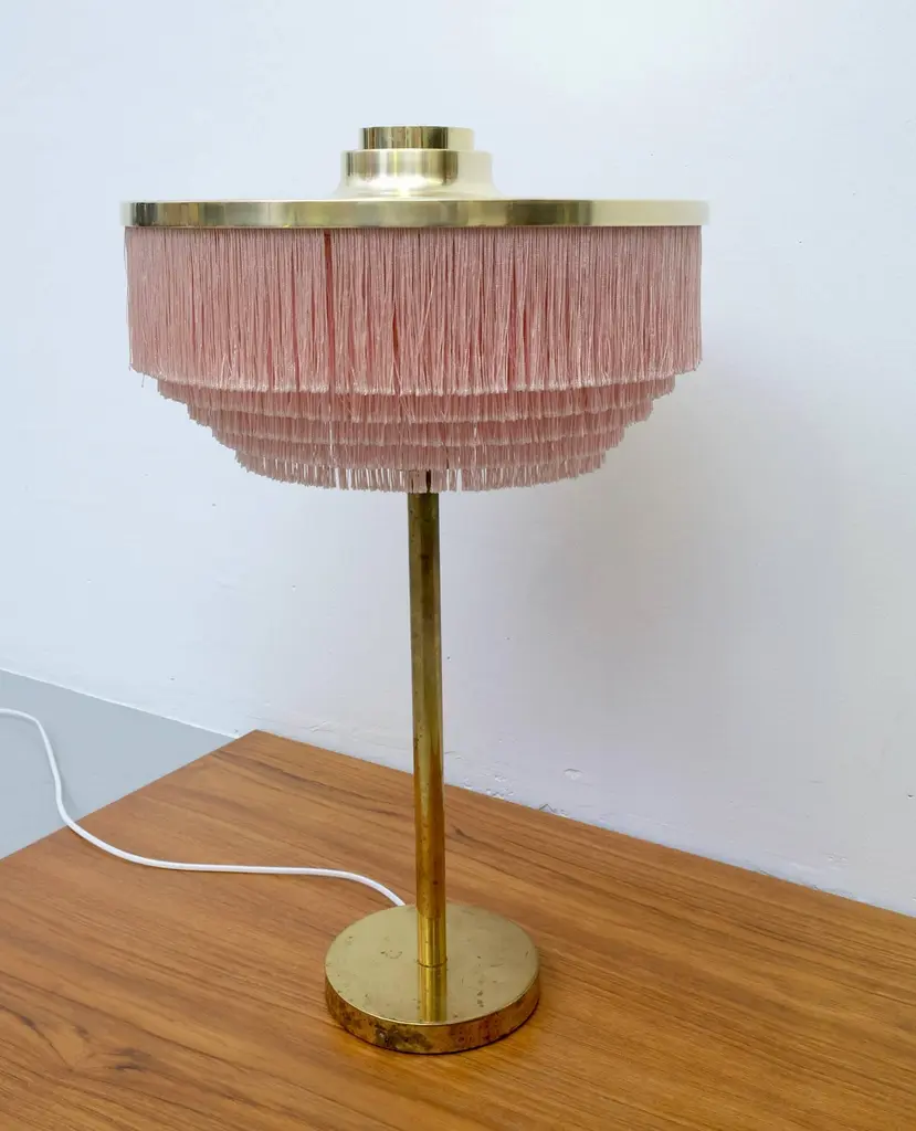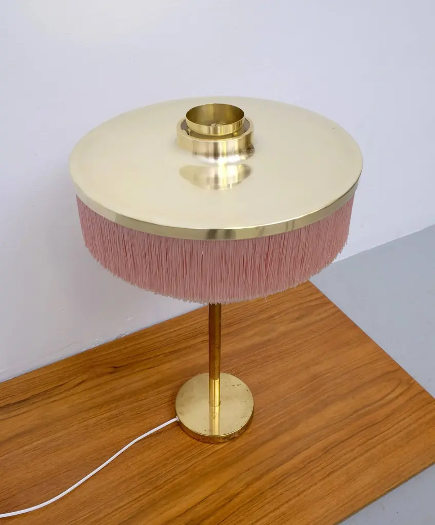 Pink Hans-Agne Jakobsson Model B-138 Brass Table Lamp, 1960s