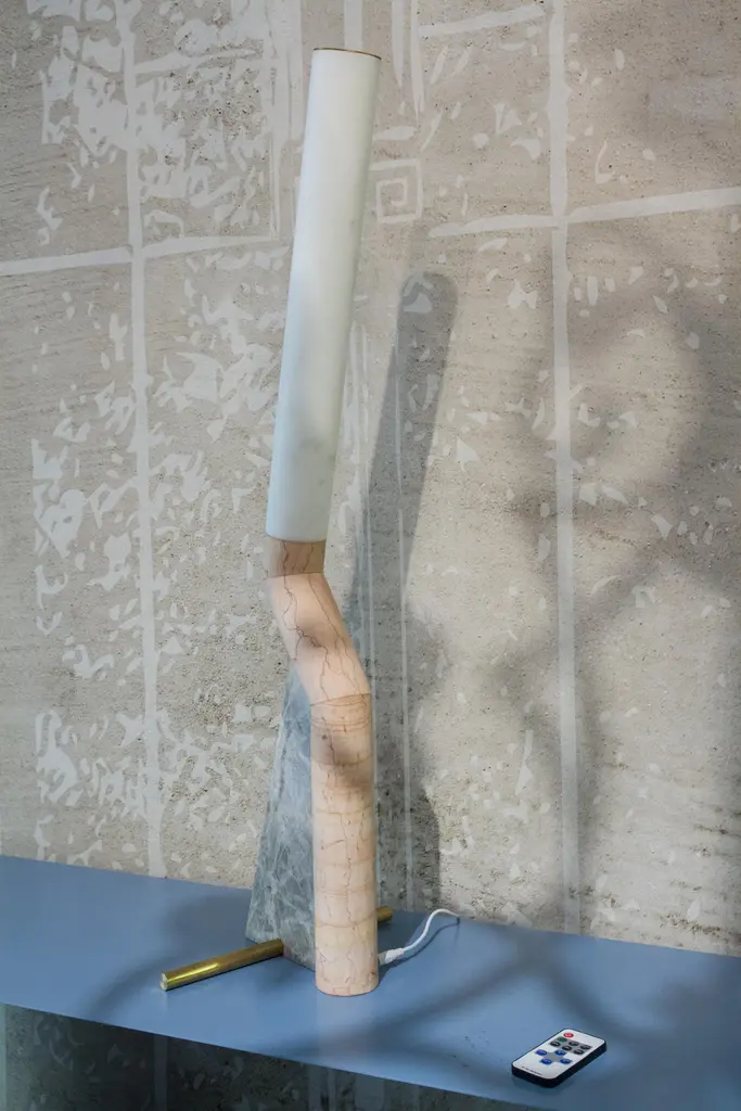 Pink heron table lamp by Bec BrittainDimensions: 18 x 6 x 85 cmMaterials: MarbleFor her, design is a true kind of love: Bec Brittain studied product design at Parsons School of Design and philosophy at NYU before graduating in architecture at the Architectural Association School of Architecture in London. She later returned to New York to work with the renowned WORKac. Driven by a passion for small- scale production and the use of elegant materials, in 2008 she was named design director of the prestigious Lindsey Adelman Studio.In 2011, Brittain founded her own brand, which was greatly acclaimed right from the start for the magnificent blend of technology, architecture and materials that creates defined, luxe and indubitably innovative objects.All our lamps can be wired according to each country. If sold to the USA it will be wired for the USA for instance.