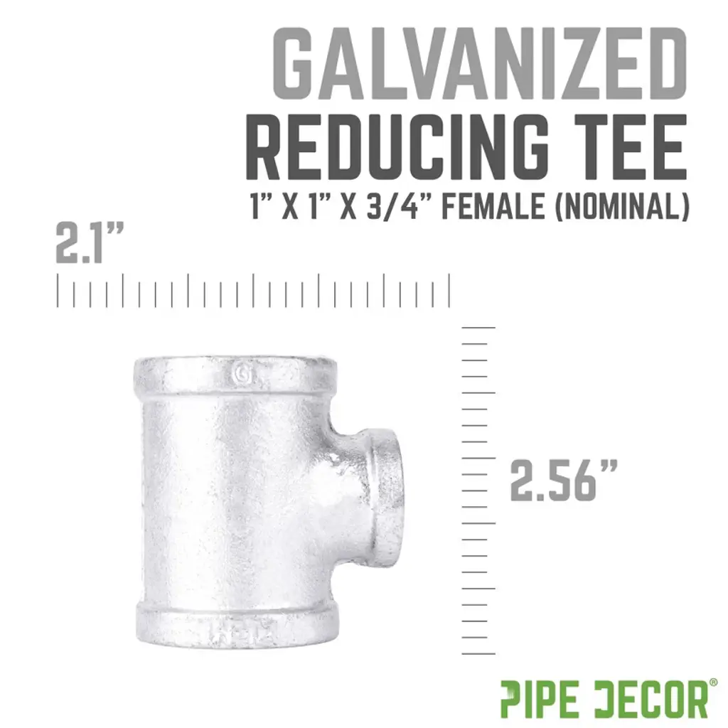 Pipe Decor 1 In. X 1 In. X 3/4 In. Galvanized Reducing Tee