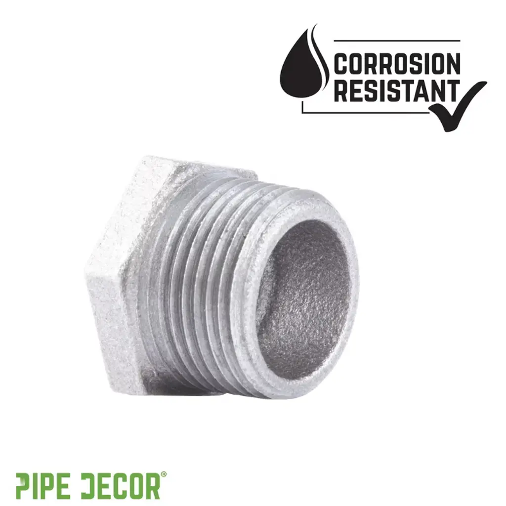 Make your standard fittings more versatile with our galvanized bushings. A bushing can be used in any project that involves connecting a larger fitting with a smaller pipe, allowing you to maximize the potential of your DIY creations. Galvanized fittings feature a silver color with a shiny finish, giving your pipe furniture a clean, polished look. Made from durable, industrial-grade malleable iron, these fittings are 100% authentic and built to stand the test of time. You will recognize PIPE DECOR parts and accessories by their unmistakable combination of beauty and strength—real industrial fittings for your designs. Accept no substitutes. Extra pieces and accessories are available for custom projects and expansions, allowing you to plug and play as desired. These galvanized pipe fittings are corrosion-resistant, making them ideal for DIY furniture projects without worrying about rust. They are project-ready, requiring no cleaning or sealing before use. Iron fittings complement a wide variety of styles and aesthetics, including steampunk lighting, industrial, factory, French country farmhouse, vintage, retro, reclaimed, DIY customized, modern, and more. IPS threads ensure compatibility with other project materials such as lamp parts, valves, and additional PIPE DECOR furniture kits of the same diameter.