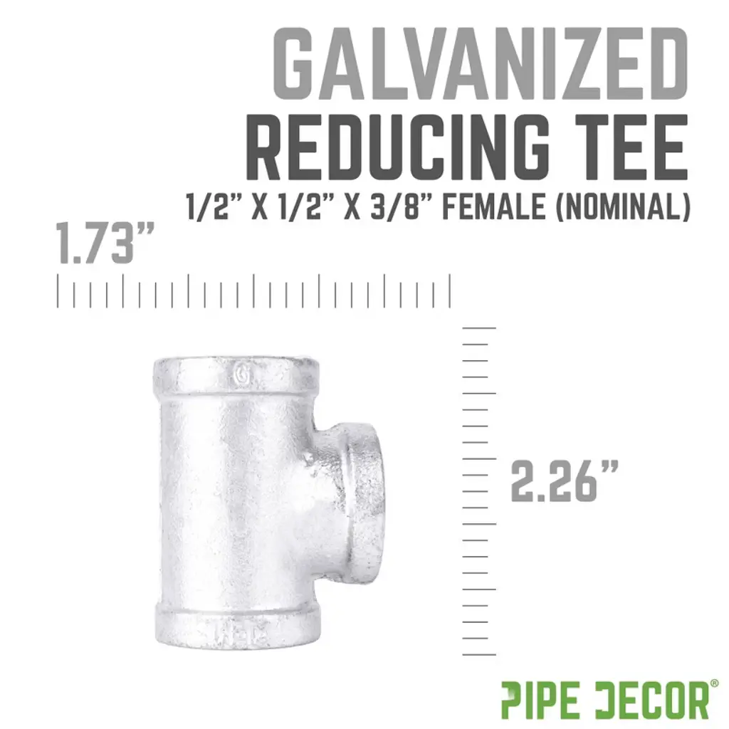 Pipe Decor 1/2 In. X 1/2 In. X 3/8 In. Galvanized Reducing Tee