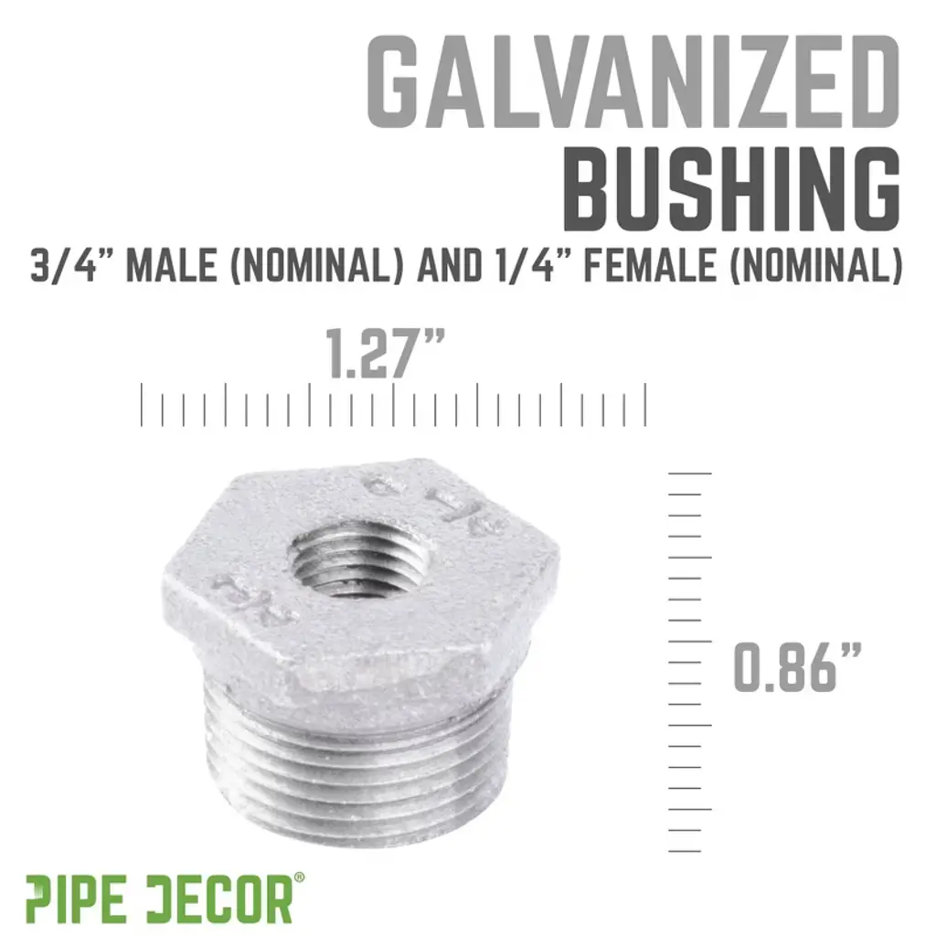 Pipe Decor 3/4 In. X 1/4 In. Galvanized Iron Bushing