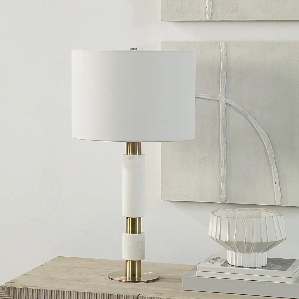 Pirot 26.5 Inch 60 Watt Honed White And Antique Brushed Brass Table Lamp Portable Light