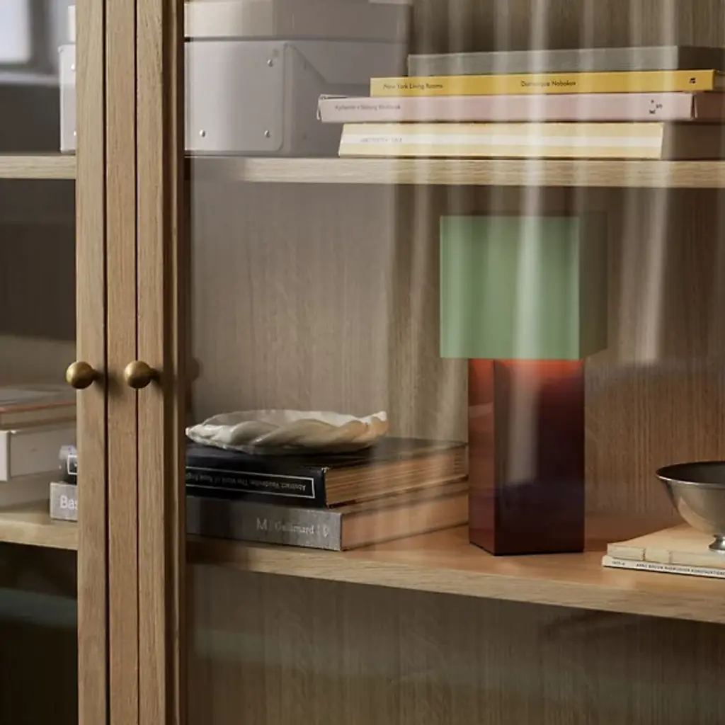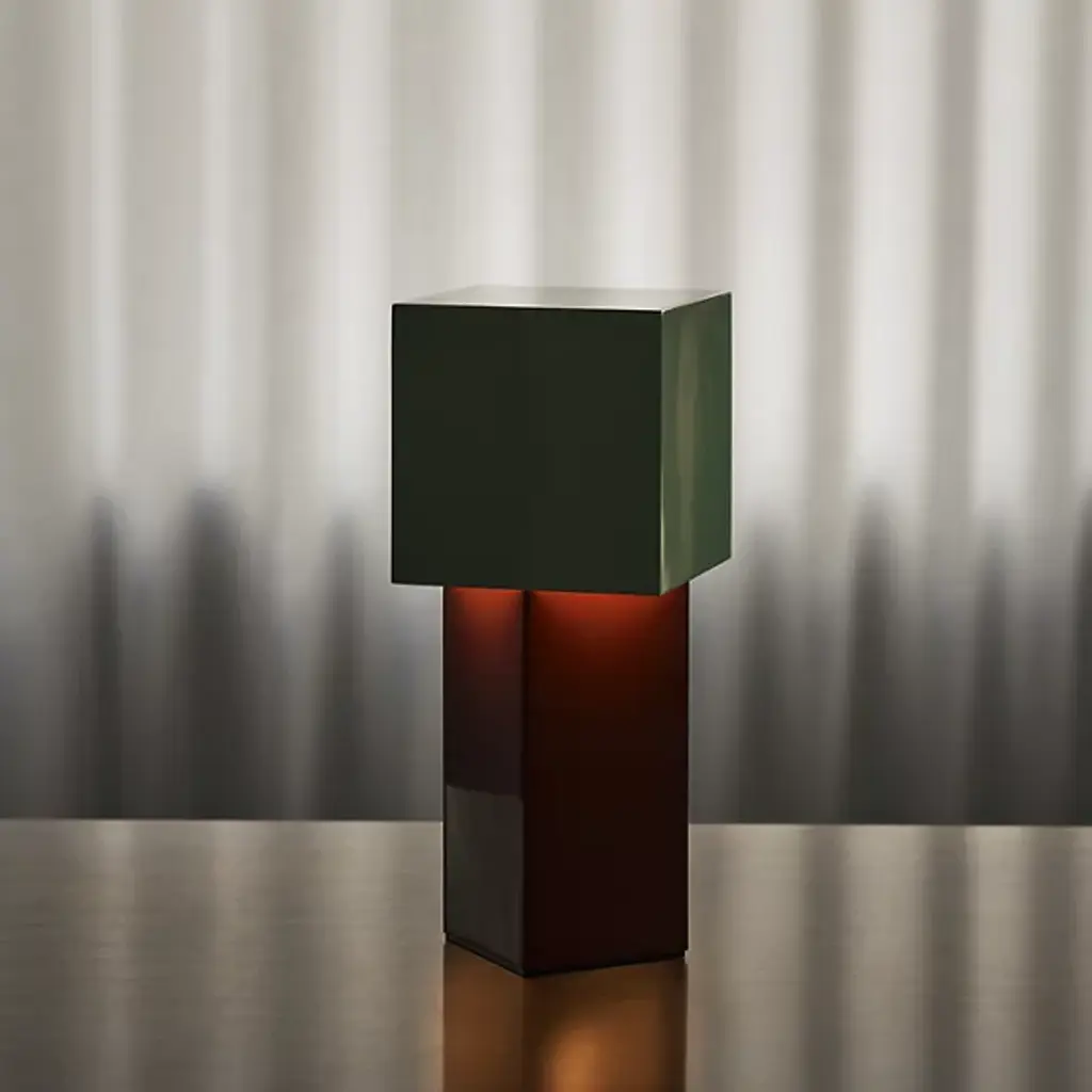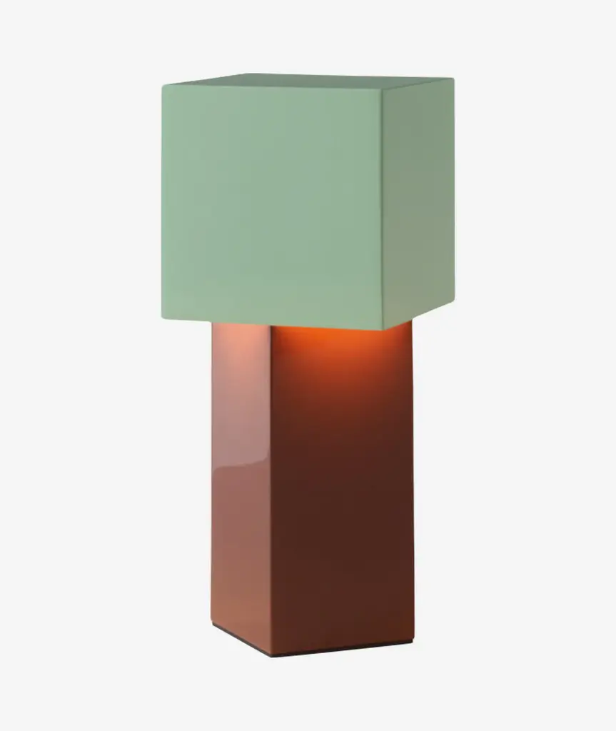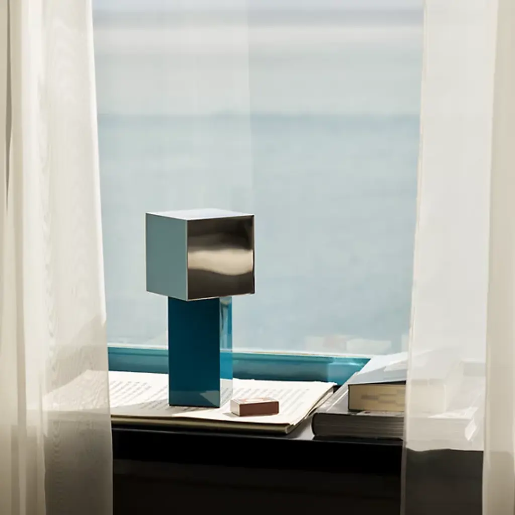 Take lighting on the go with the Pivot Rechargeable LED Table Lamp from &Tradition. A cubic, clever design fashioned from a mix of powder-coated iron and mirror-polished steel, its mix of rich colors and bold reflections creates an engaging feast for the senses. A marvelous design able to evoke natural and manmade light, it features a cubic shade at a 45-degree angle offset to the tall rectangular prism base. The lighting effect transforms rapidly at the tap of a touch dimmer, creating modern candlelight from its abstract form. •Can be used outdoors but must be taken inside for storage