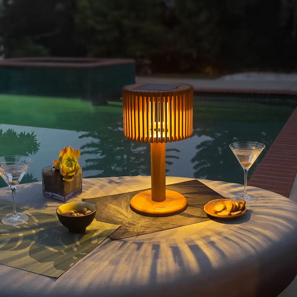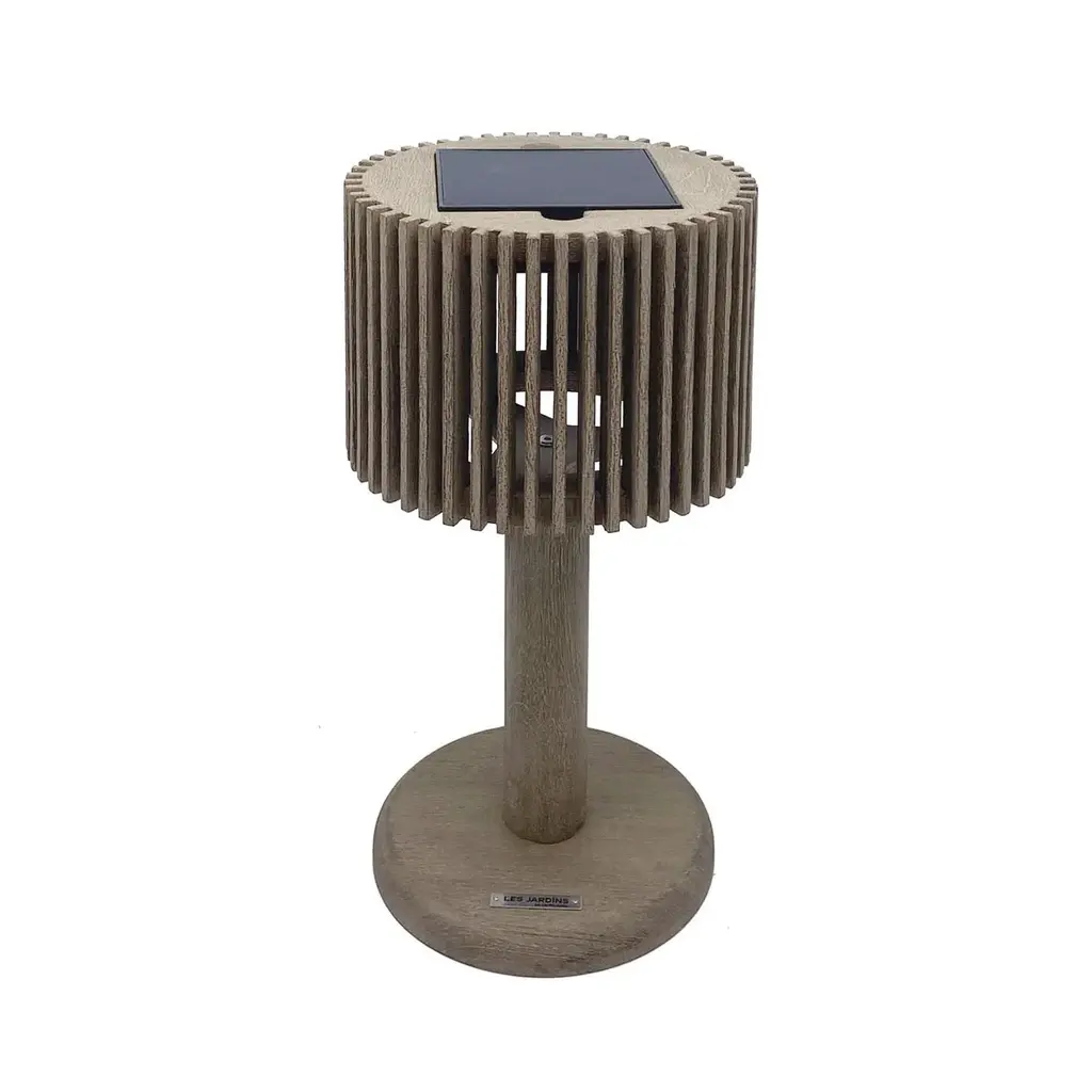 Create romantic ambiance indoors and out, with the elegant and robust Pixy Solar Outdoor Table Lamp from Les Jardins. Crafted with sustainably-sourced teak wood, this portable lamp features a dynamic silhouette illuminated by an ambient LED glow. Its cutting-edge solar and USB tech offers durable and sustainable power sources, while its smart mode allows for enduring luminosity regulation. Highlights