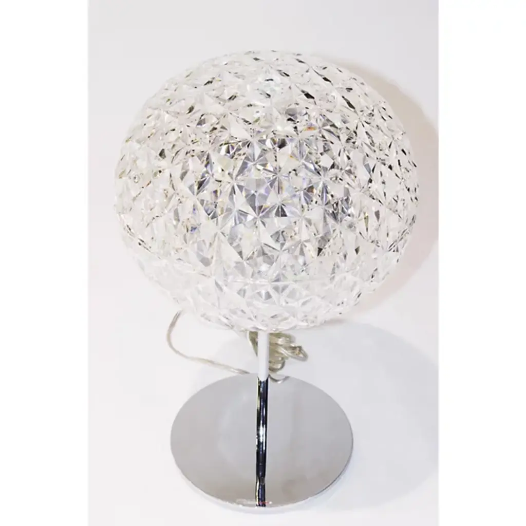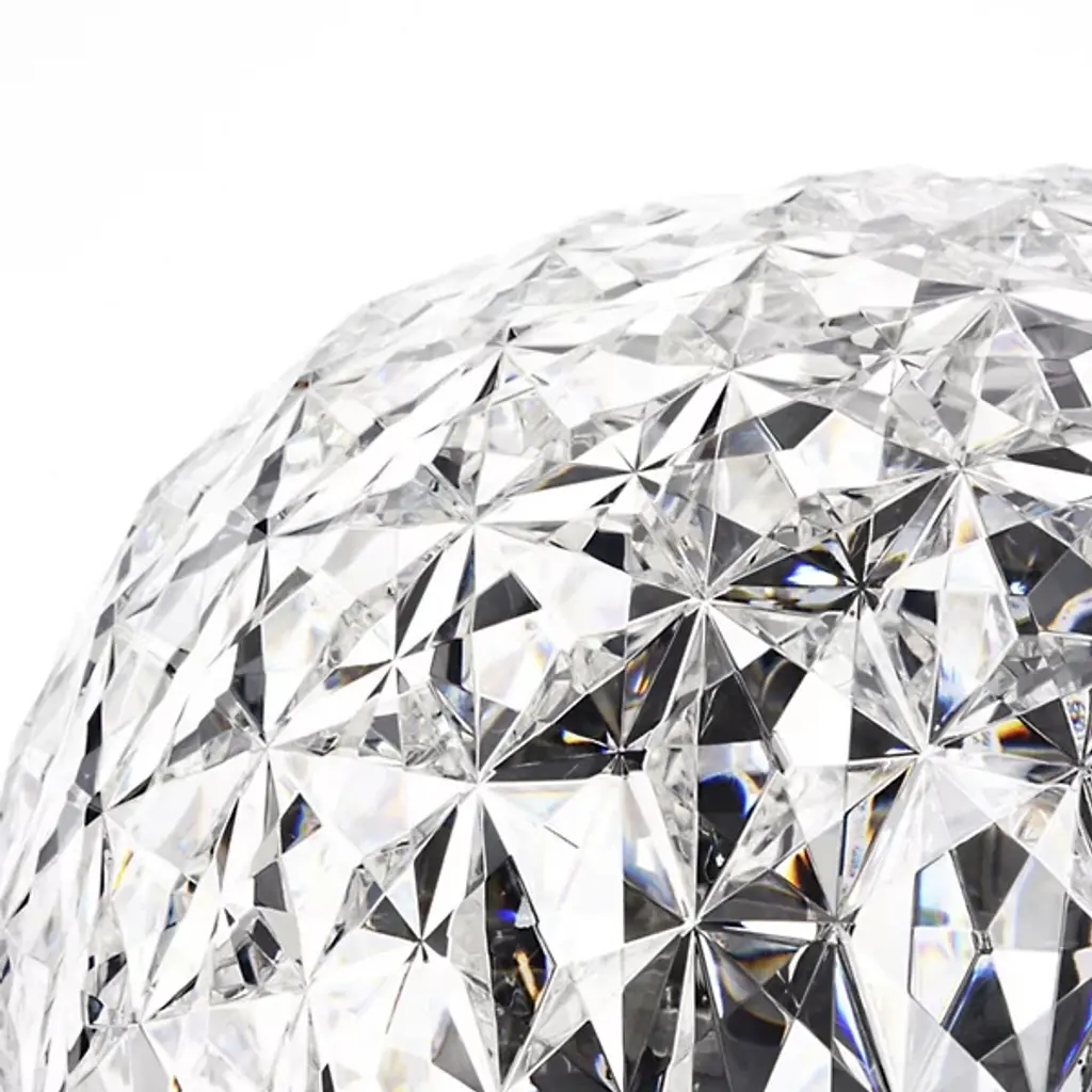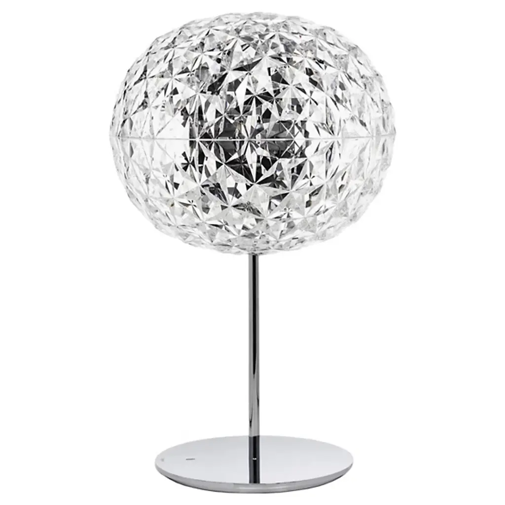 Tokujin Yoshioka’s innovative design makes the Planet Low Table Lamp a visual marvel of lamp craft. Made of transparent thermoplastic technopolymer and a die-cast aluminum frame, the lamp features an unusual, slightly elliptical diffuser. Due to the many sides within the surface, light from the lamp’s LED bulb is reflected in intricate patterns. The lamp’s low height makes it ideal for small tables and desks.