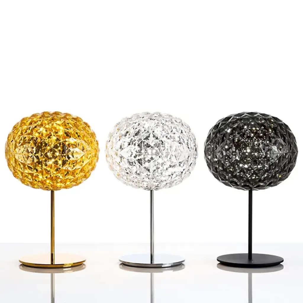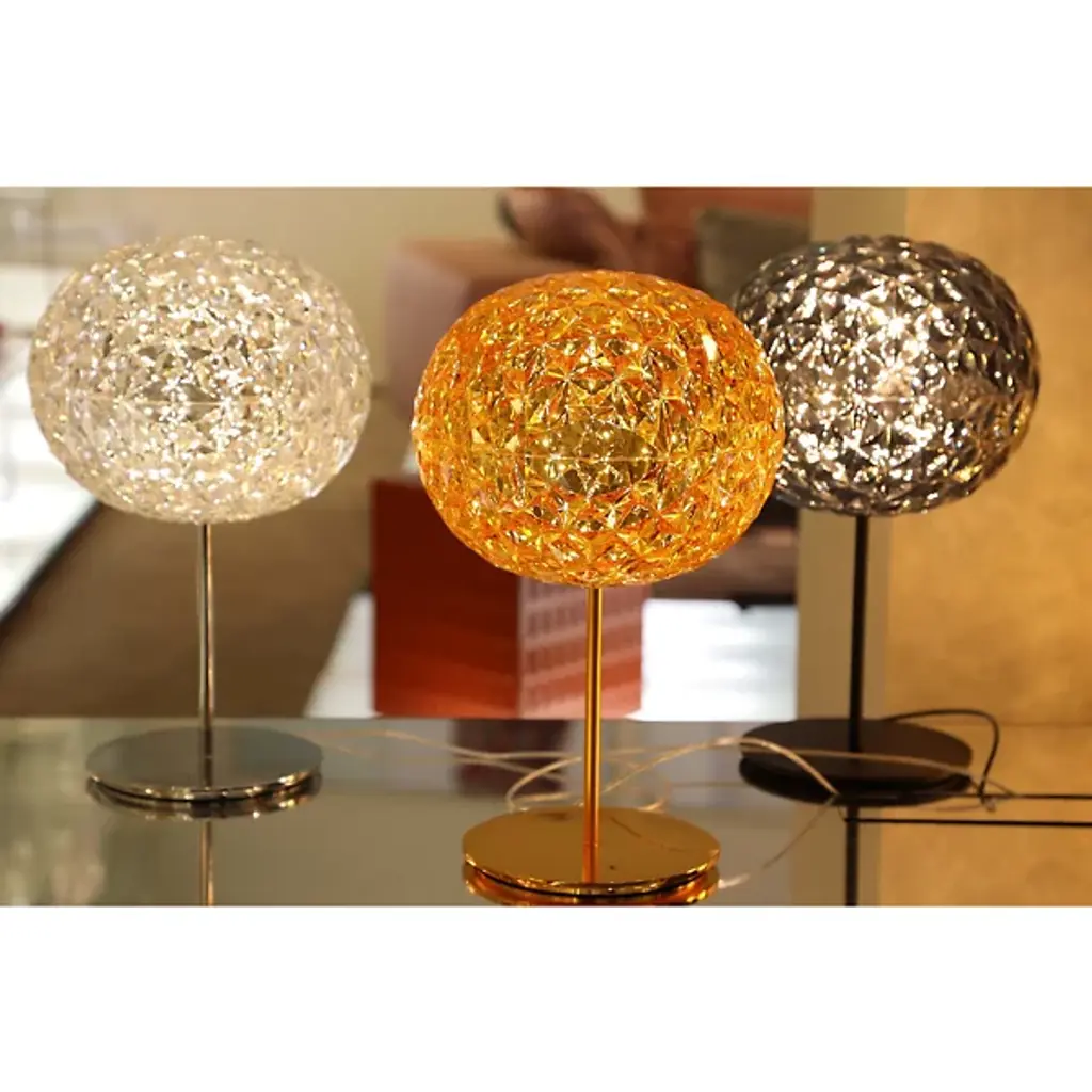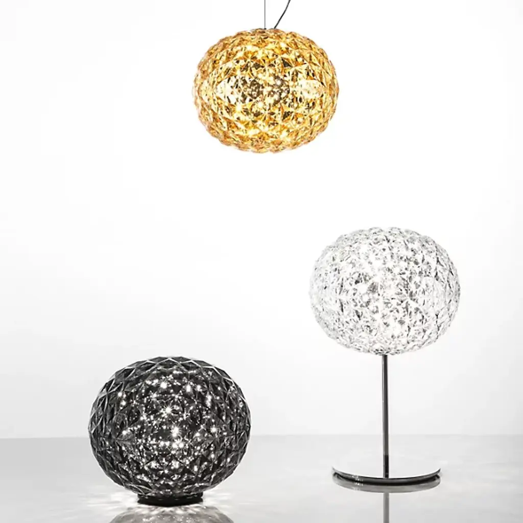 Tokujin Yoshioka’s innovative design makes the Planet Low Table Lamp a visual marvel of lamp craft. Made of transparent thermoplastic technopolymer and a die-cast aluminum frame, the lamp features an unusual, slightly elliptical diffuser. Due to the many sides within the surface, light from the lamp’s LED bulb is reflected in intricate patterns. The lamp’s low height makes it ideal for small tables and desks.