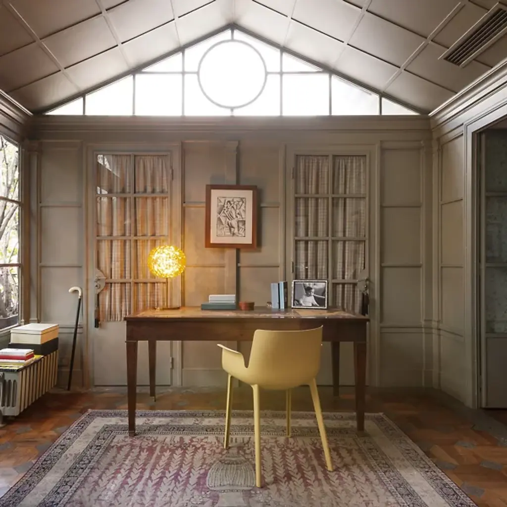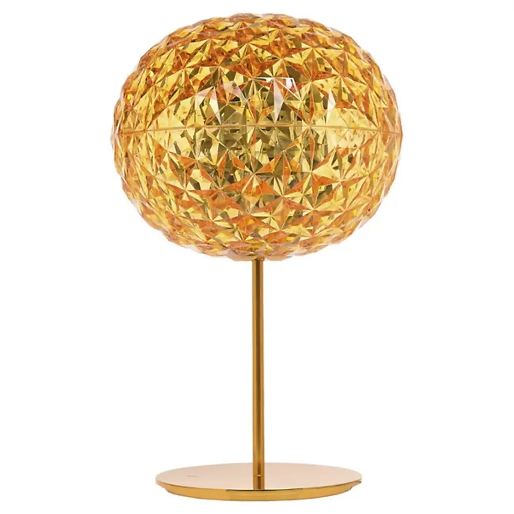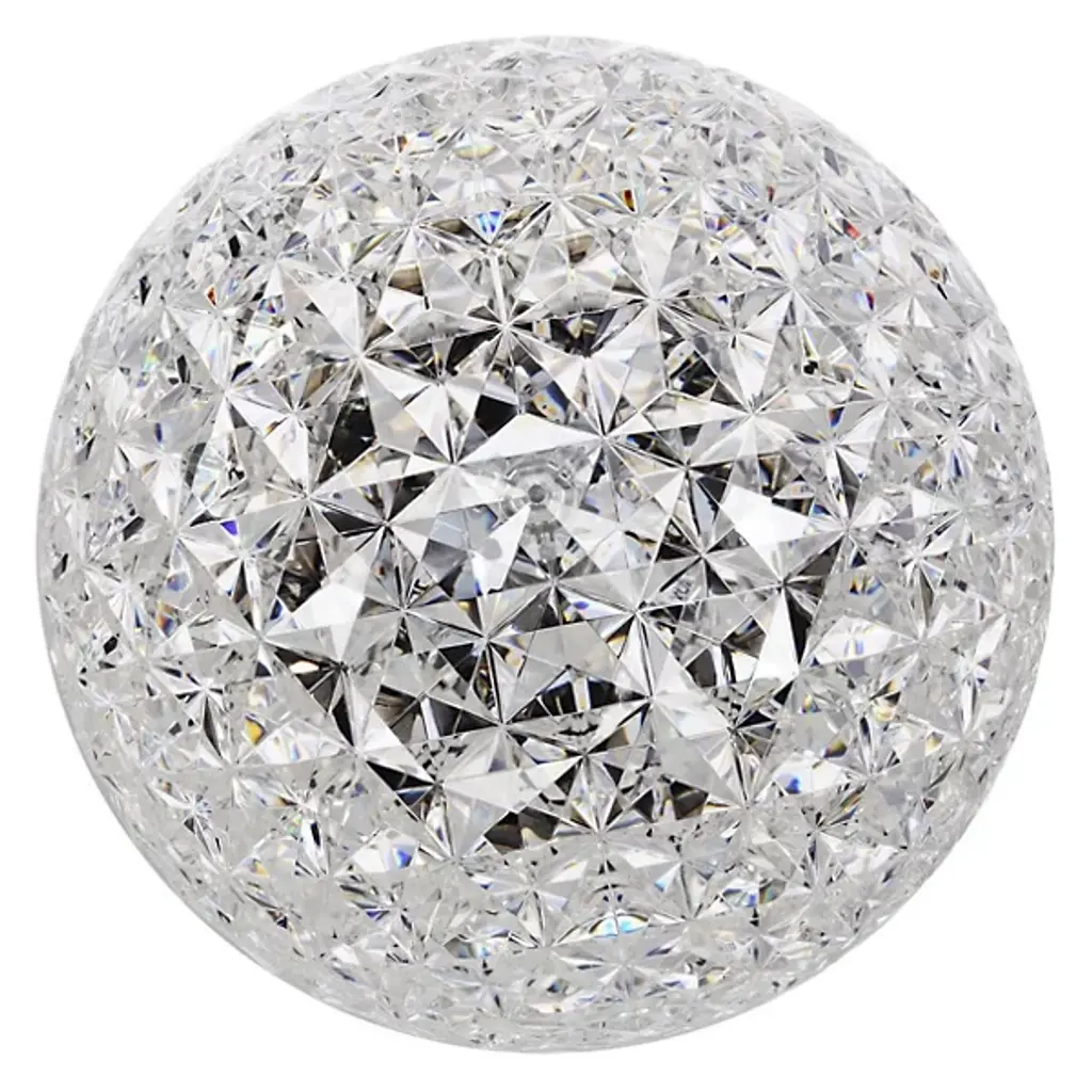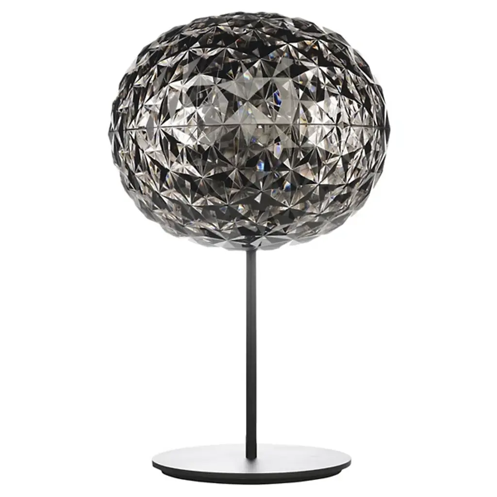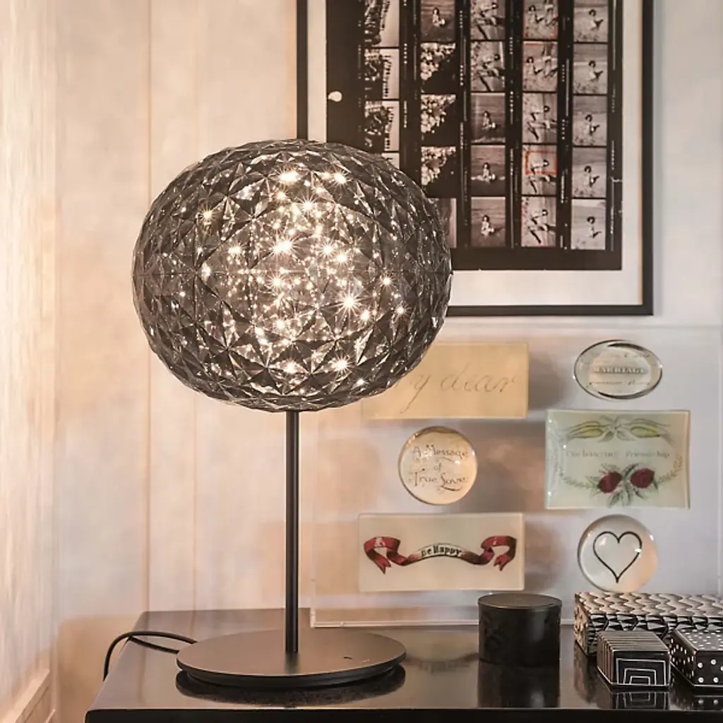 Tokujin Yoshioka’s innovative design makes the Planet Low Table Lamp a visual marvel of lamp craft. Made of transparent thermoplastic technopolymer and a die-cast aluminum frame, the lamp features an unusual, slightly elliptical diffuser. Due to the many sides within the surface, light from the lamp’s LED bulb is reflected in intricate patterns. The lamp’s low height makes it ideal for small tables and desks.