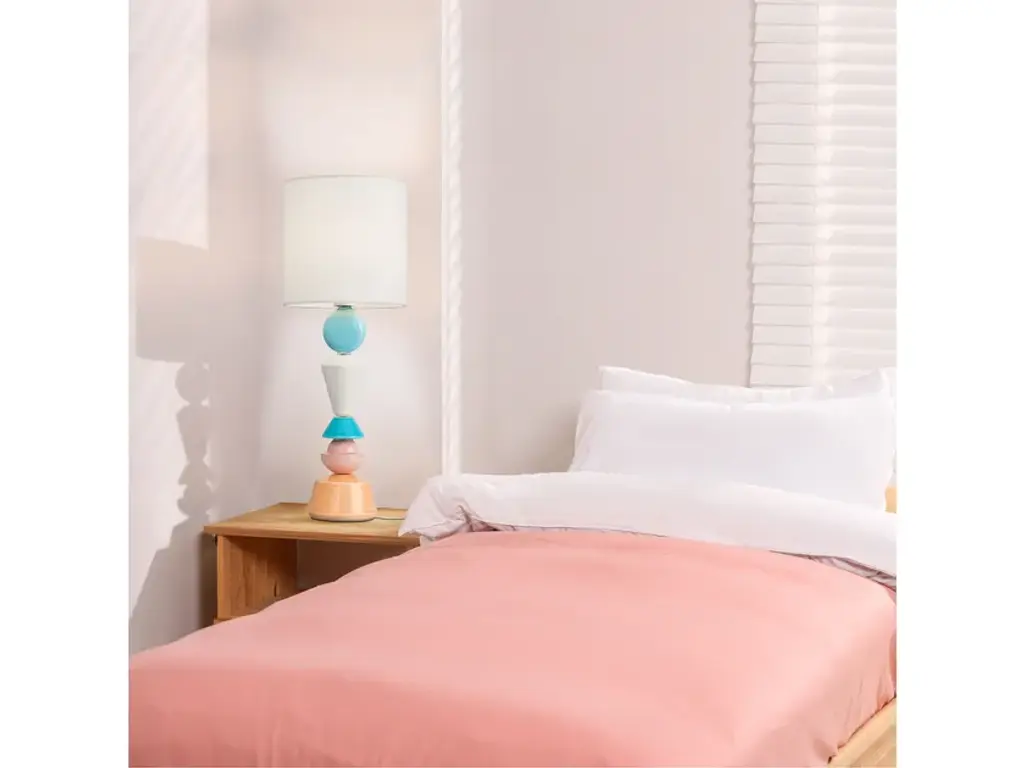 The PLAY table lamp brings joy and colour to any room with its unique, playful design. The multi-coloured ceramic elements combined with the classic fabric shade make this lamp a real eye-catcher.Bulb: 1 x E27, max 40 W (bulb not included) Materials: ceramic / fabric