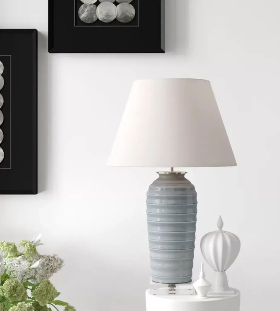 Subtle crackled soft pink porcelain is featured on the Playa Lamp by Port 68. It is a calm accent for any modern or casual interior. Perfect for the beach house or contemporary home. Featuring nickel hardware and a Lucite base. Also available in smoke and ivory/white. Size: 31"H x 19"D Shade Material: Linen/cotton blend Shade Style: round empire hardback Nickel spider 3-way switch, 150 watt max bulb Material: Porcelain/Linen/Cotton Ships via UPS Free shipping in the U.S.