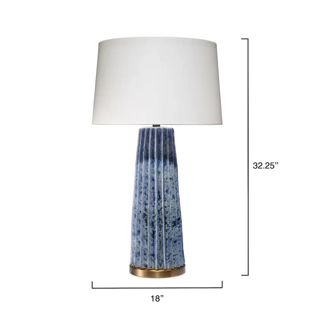 The simple lines of this handcrafted ceramic lamp are elevated with a unique pleated effect inspired by Japanese streetwear. We keep the fashion-forward look sleek with the addition of a tapered, rolled-edge linen shade. A metal base and trapezoid finial add the final flourish. Display singly or in pairs anyway that needs a touch of extra illumination! At once modern and timeless, this is a look that will always be in style.