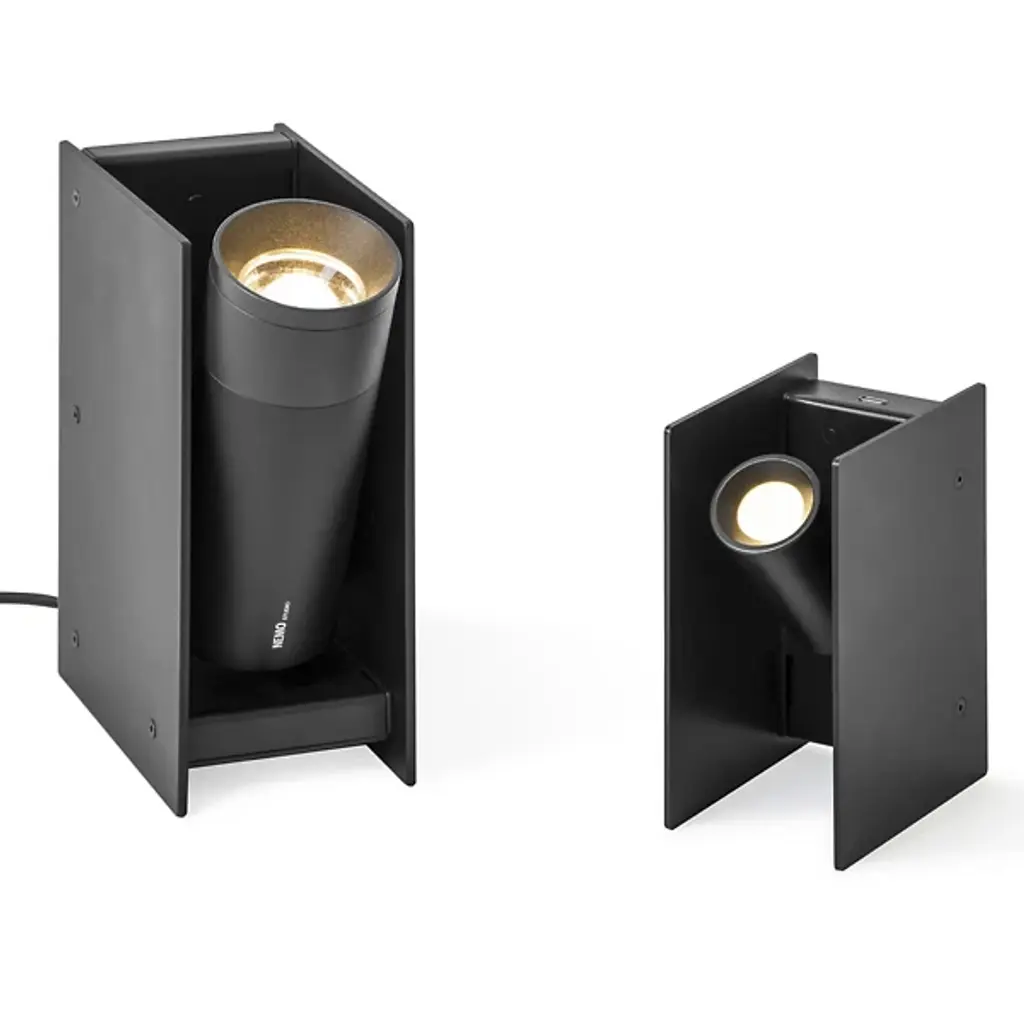 Compact yet commanding, the Plint Battery LED Mini Table Lamp from Nemo offers powerful accent lighting in a simple, flexible form. Designed by Massimo Colagrande, its bracket-style aluminum frame houses a high-performance spot LED powered by a rechargeable battery. With a convenient USB-C cable charger, push dimmer, and on/off base switch, it adapts effortlessly to any setting, either oriented upward to provide an ambient uplight or arranged at an angle for a warm wall wash.