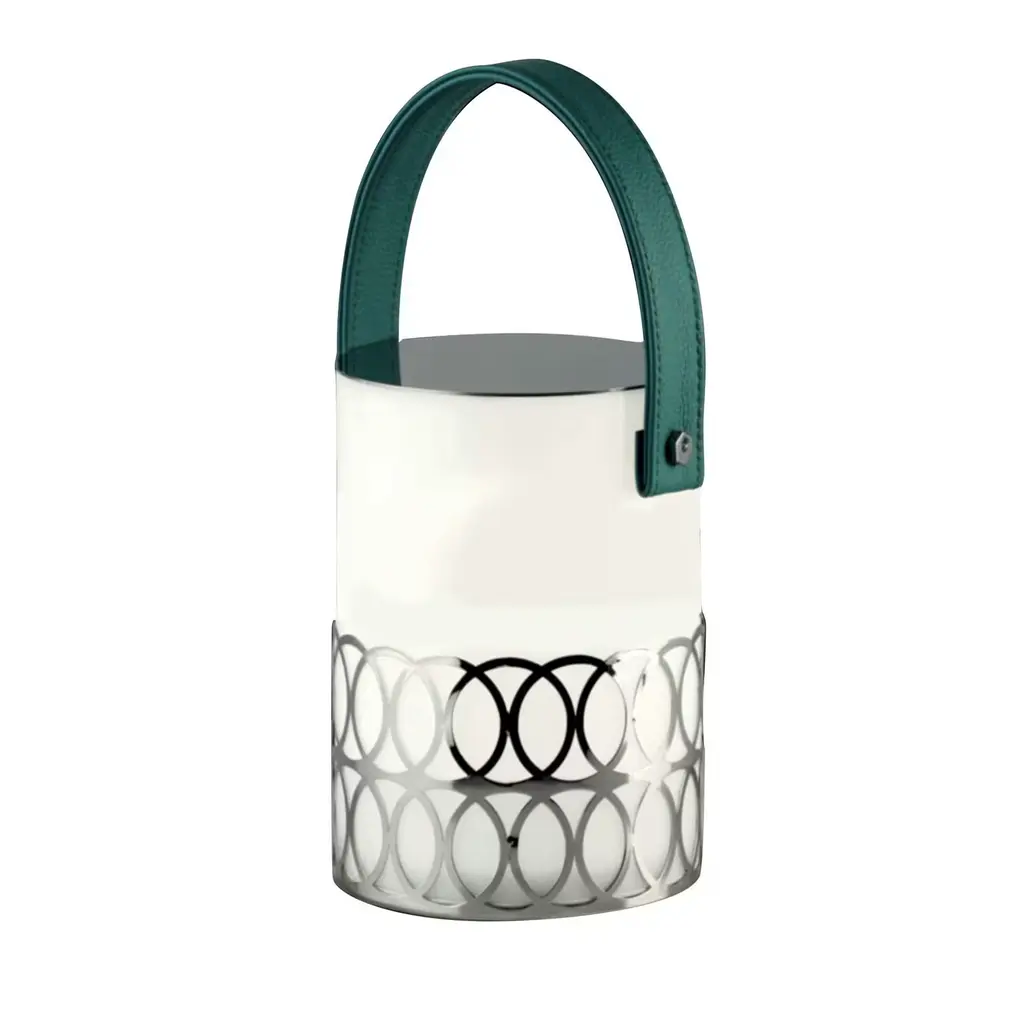 Thanks to its folds made with an unexpected material, polyethylene, and wrist bag-style cord, Plisy is the perfect lighting complement to give a chic and fun touch to an outdoor evening. A portable lamp that translates the aesthetics of elegantly pleated indoor lamp screens into a piece specially designed for outdoor use. Plisy is a stylish and technological reinvention of the garden lantern, which incorporates LED light and is charged by USB. A seven-hour charge provides ten hours of light at maximum intensity, which can be regulated by touching its power button with your fingers. Although it is portable, it is accompanied by a base made of iron rod. This stand, reminiscent of those used in the most elegant restaurants to accommodate handbags with their owners, enables the users to place Plisy near a dining table or in a corner. Features