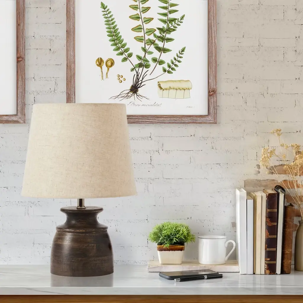 The petite shape makes the Benji Lamp ideal for kitchen or small workspace. The washed black, mango wood base and natural linen shade give it an elegant touch.