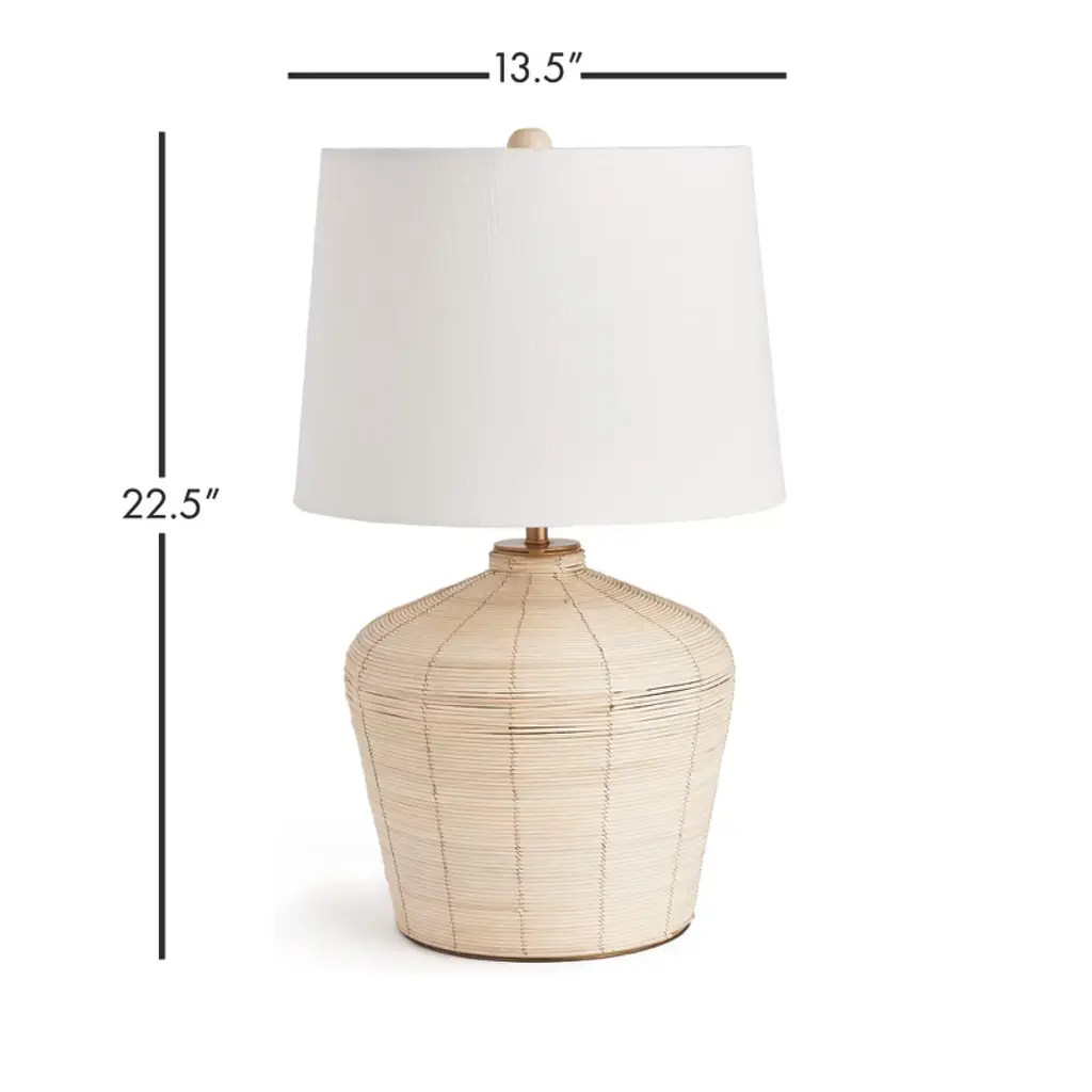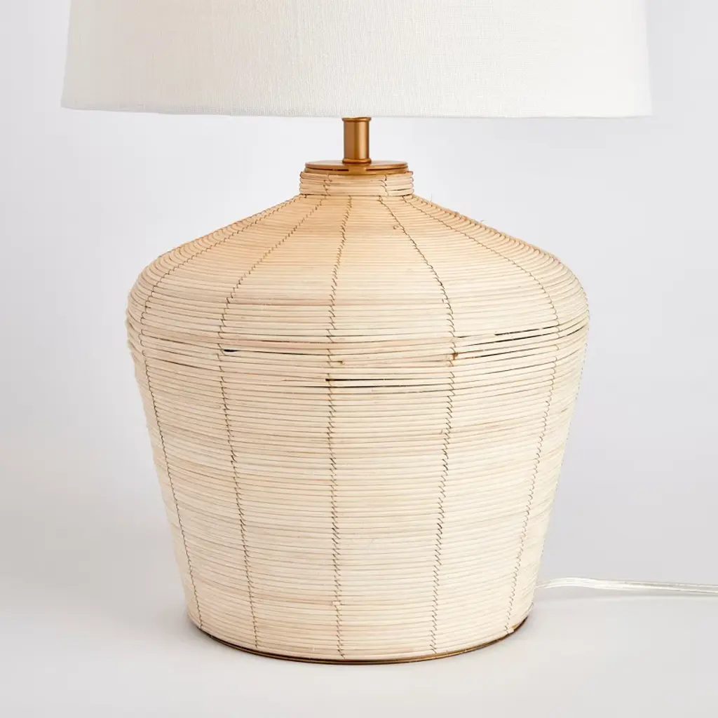 Woven in a whitewash cane rattan, with subtle variations in color that makes each one truly unique, this lamp is an instant classic. Topped with a wide cylindrical shade, a perfect accent for bedroom, living room or study.