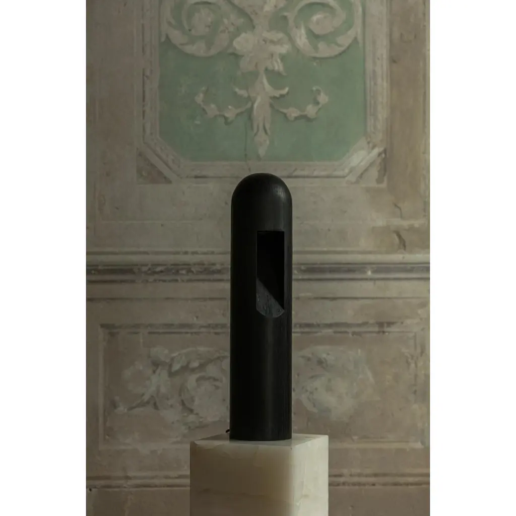 Plywood lamp by Rick Owens2012Dimensions: L 15 x W 15 x H 60 cmMaterials: PlywoodWeight: 4.8 kgNote: LED 230vAvailable in grey concrete.Rick wens is a California-born fashion and furniture has developed a unique style that he describes as “luxe minimalism.”Though his designs are simple and spare, Owens thrives on theatricality - producing wildly original runway shows featuring gender-fluid models of all ages and shapes. Inspired by his longtime partner and muse, Michele Lamy, clothes and furniture alike feature dark grays, blacks and browns. Like his frontier forebears, Owens finds his strongest influences in nature - his furniture and housewares have simple, organic shapes, and a few items even feature his distinctly 21st century take on antlers.
