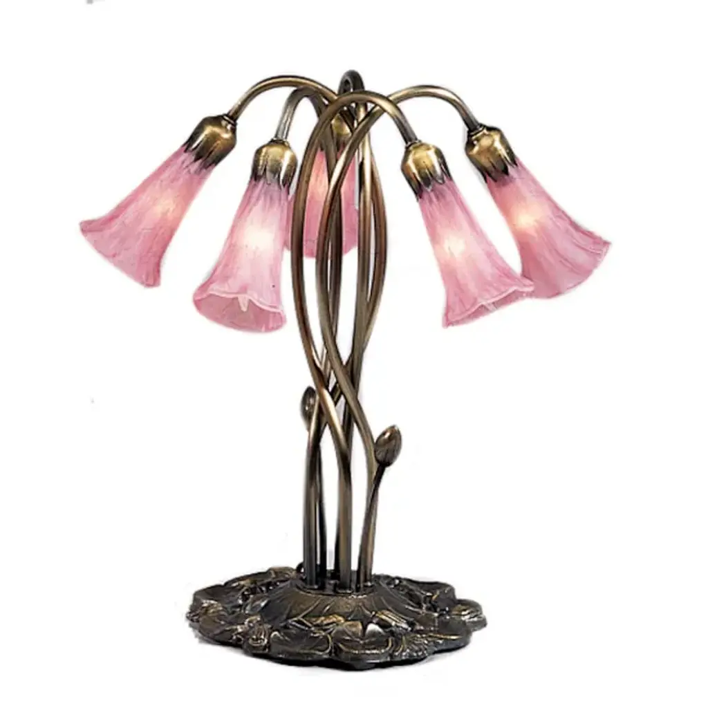 Poelking 2-Light Pink Lily Tiffany Table Lamp - N/a