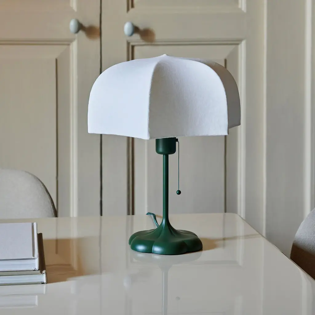 Drawing inspiration from the opulent details found in Baroque art and architecture, the Poem Table Lamp has a romantic and elegant expression. Made through an intricate process where liquid tissue is sprayed over the lamp's casted aluminum base, the result is a translucent shade that artfully stretches over intricate steel arches, ensuring that the lamp emits a soft, diffused light while resembling a delicate flower. The non-woven polymer shade will beautifully patinate over time, giving it a unique appearance. Place the Poem on your bedside table or let it elegantly illuminate your desk.