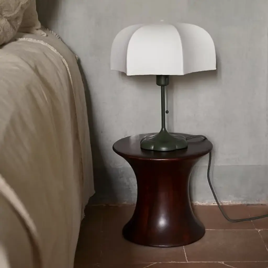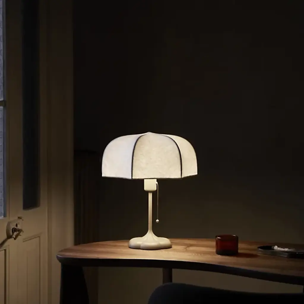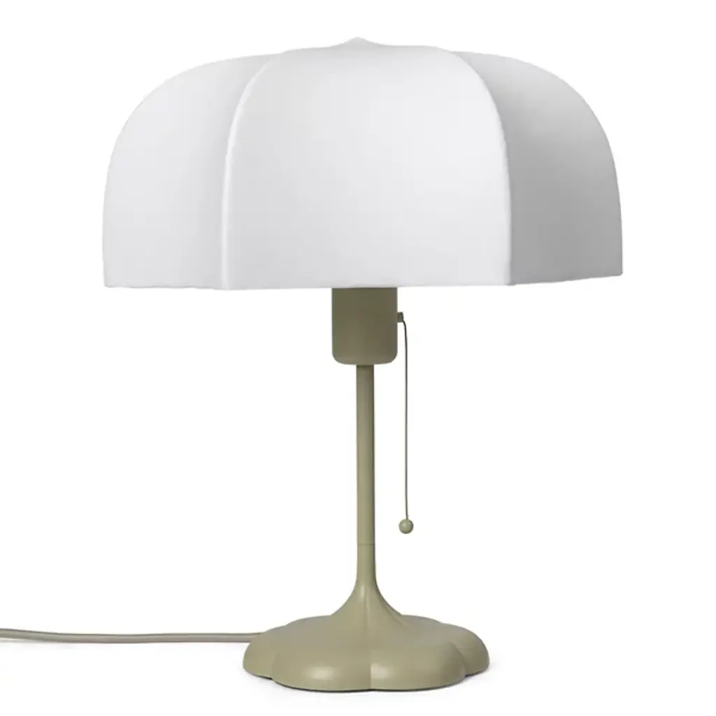 The Poem Table Lamp from ferm LIVING is inspired by Baroque architecture and art. Its base is composed of powder coated, casted aluminum. At the same time, steel arches at the top are concealed by an intricate polymer shade that will patinate, bringing distinction to this mid-century modern piece. A pull chain socket switch enhances functionality and complements its Art Deco aesthetic. This lamp is well-suited for placement near bedsides, adding glamor to your setting.