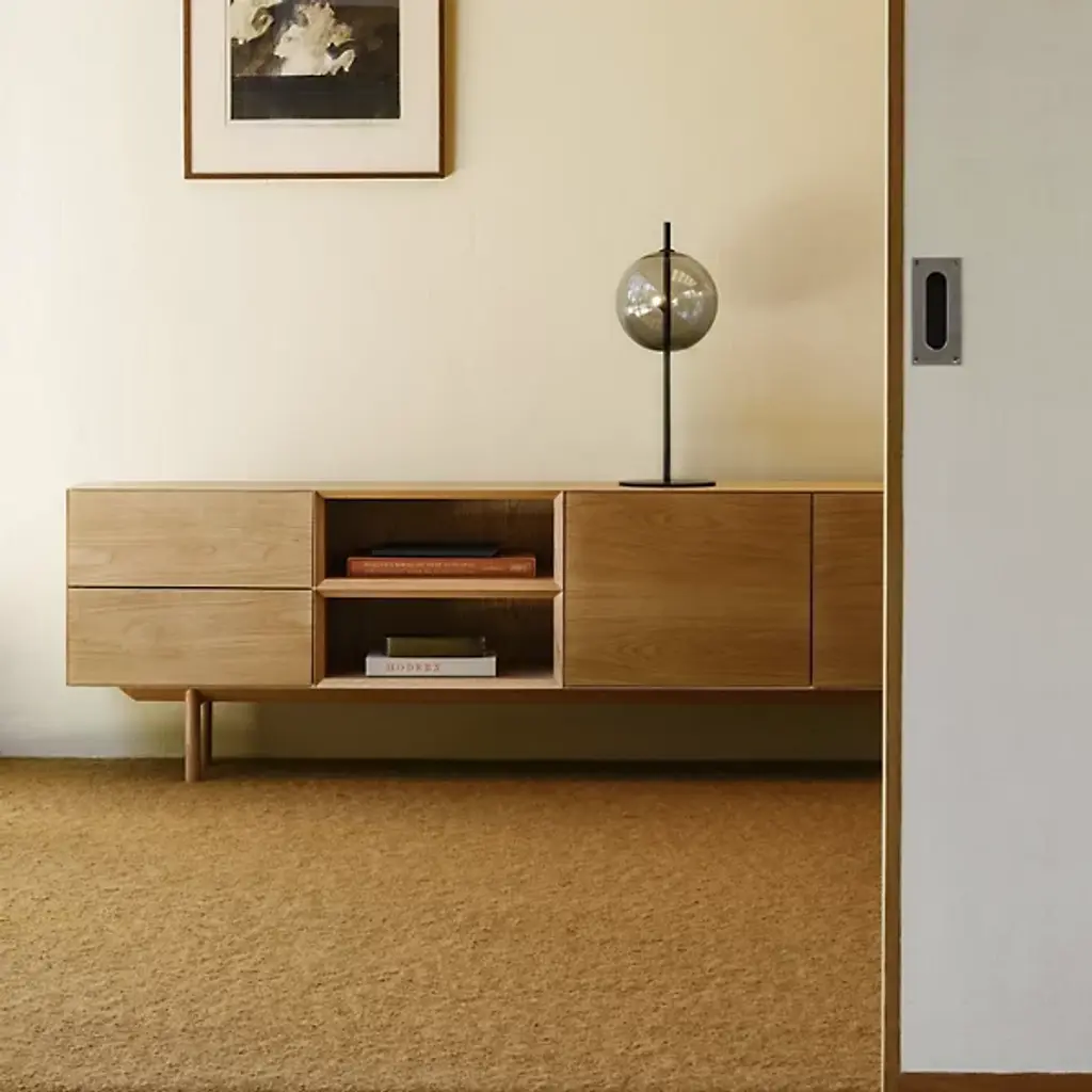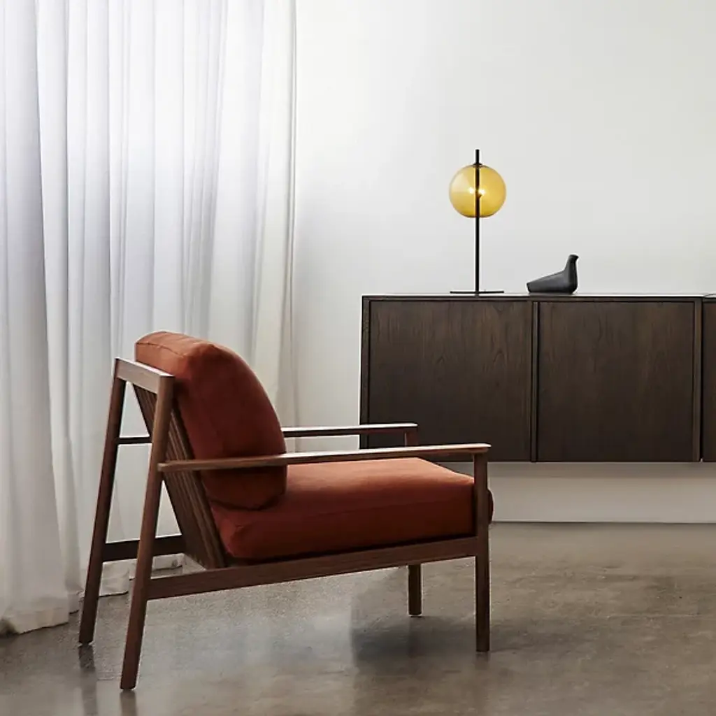 Clever, casual, and friendly, the Point LED Table Lamp from CITTA adds a touch of welcoming whimsy to interiors. Best-suited to tables or sideboards, it’s designed by Alex Buckman in collaboration with the CITTA design team and which was later given the Gold Pin award. A circular base and single central stem secure the fixture and its lamping, transmitting a short LED lamp inside a spherical glass shade. The shade itself is hand-blown by expert artisans, imbuing it with small imperfections that create a unique character while contrasting well with the smooth metal structure and transforming bright glare to a warm glow.