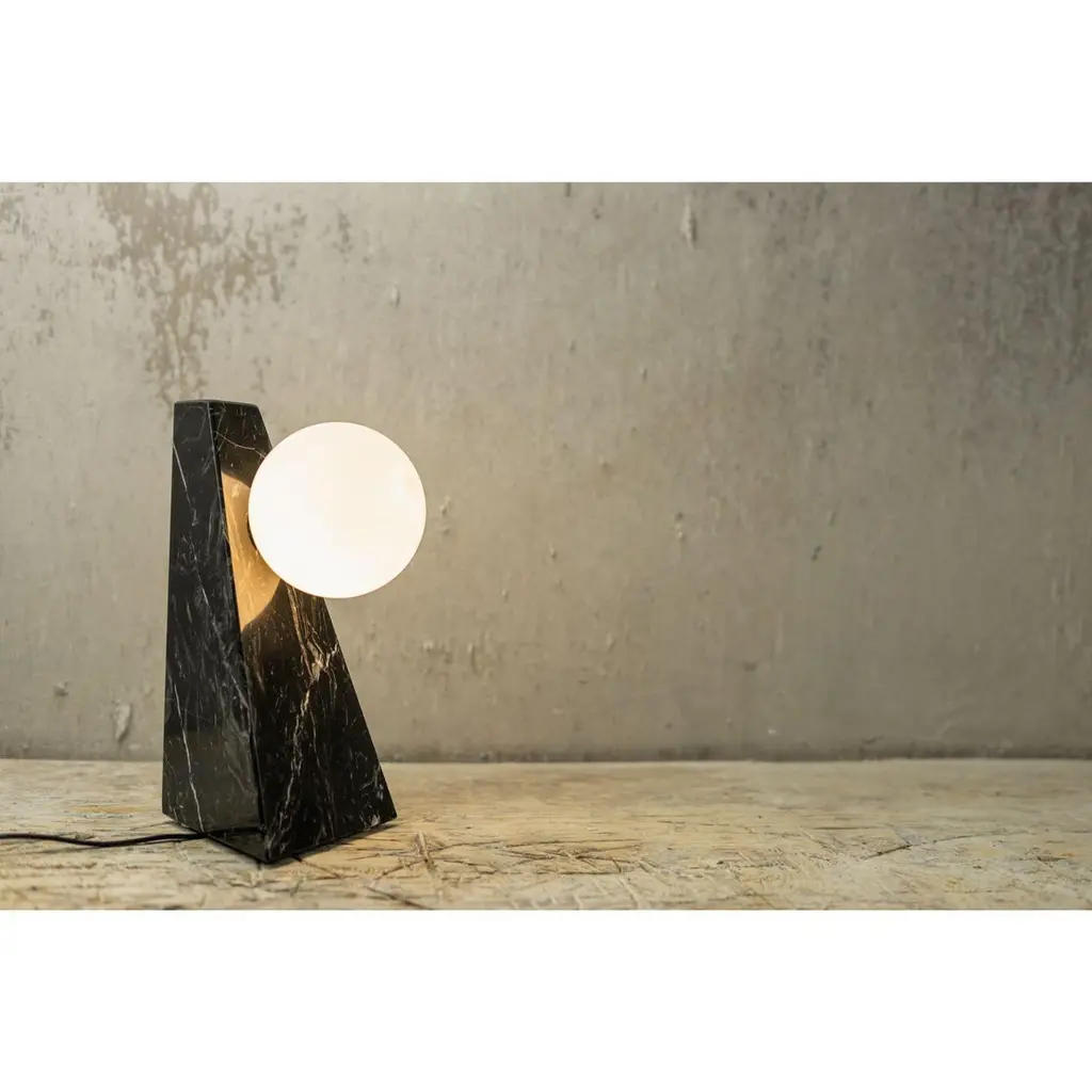 Point of contact marble lamp by EssenziaMaterials: Nero MarquinaDimensions: 30 x 18 x 20 cmAlso Available: Carrara, India GreenTable lamp that explores the concept of gravity suspension and interaction between two different cosmic shapes.All our lamps can be wired according to each country. If sold to the USA it will be wired for the USA for instance.Essenzia it’s a brand focused on contemporary design in the context of stone, which aims to offer a new vision for the use of marble, carefully selected from early stage in the quarries, to create exclusive products for daily life. Combining tradition and innovation, each product it’s processed by high tech machinery and finished by our highly skilled team of specialized artisans. These dialogues result in high-end products with refined finishing touches that emphasise the features of the stone, that make each product unique.