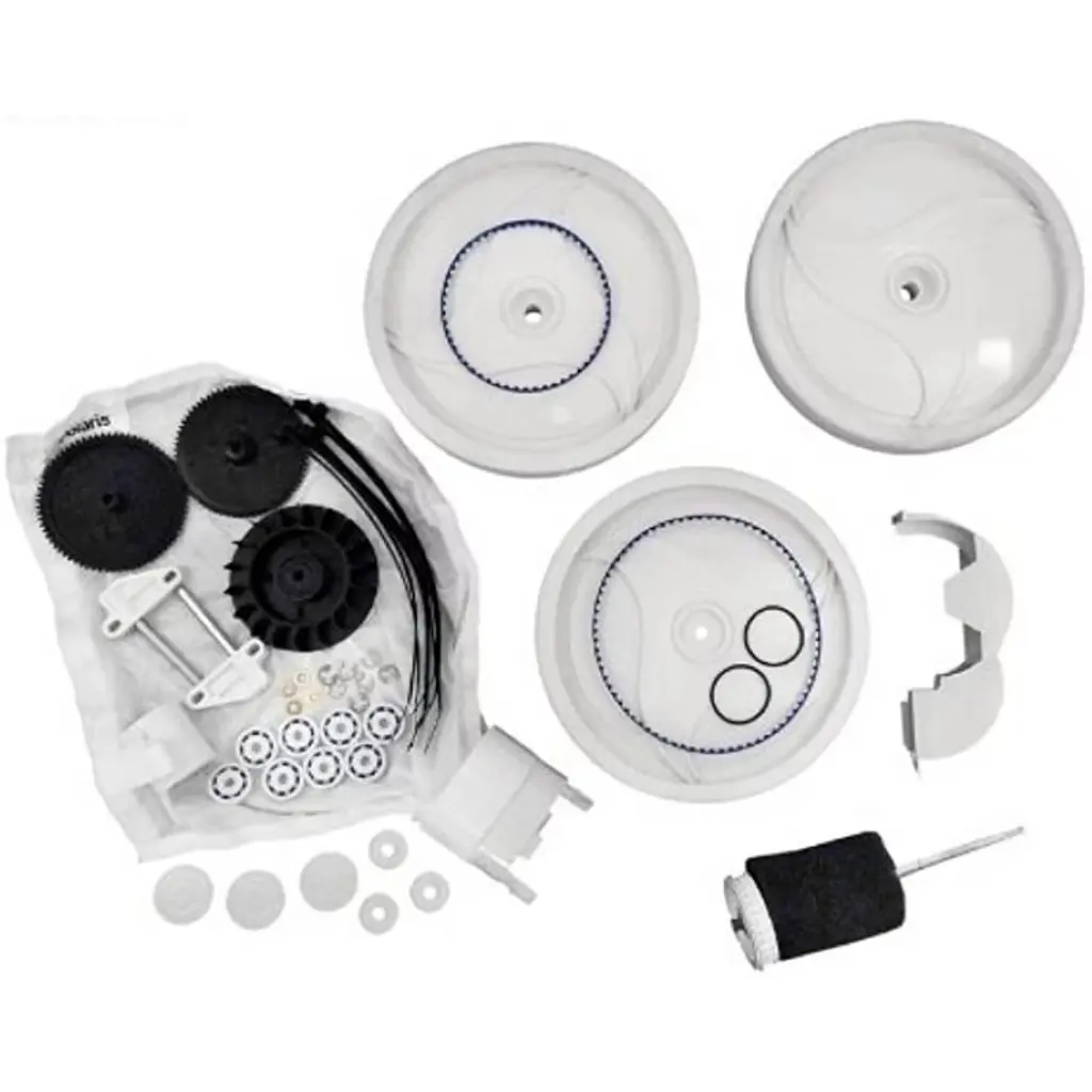 This kit comes complete with everything you need to repair your cleaner and is specifically designed for the Polaris 380 and Polaris 360. Get your Polaris cleaner running like new with the Polaris 380/360 Pool Cleaner Factory Tune Up Kit. The Factory Tune Up Kit has all the parts you need with original manufacturer parts without replacing your entire cleaner. Includes: all-purpose bag turbine upper housing 3 hub caps 10 stainless steel e-clips 8 ball bearings 3 white max trax tires 2 double-side wheels 1 small and large belt kit 3 shield bearings 2 axel block assemblies transfer pulley/drive shaft assembly drive train gear kit with turbine bearings single side wheel 6 hose clamps sweep hose scrubber o-ring . This product may be subject to Prop 65 rules and regulations. - www.P65Warnings.ca.gov