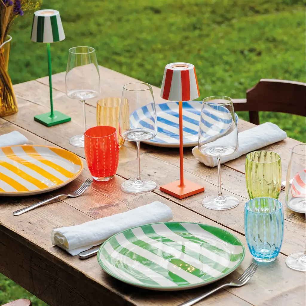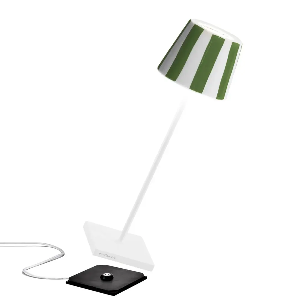 A unique update to their most iconic battery-operated portable lamp, Zafferano's Poldina Lido Outdoor Table Lamp is a special edition featuring a hand-painted ceramic shade inspired by summers on the Italian coast. A rechargeable battery powers the lamp, allowing it to be easily relocated wherever additional light is needed, while the touch-dimmer control lets you set the mood indoors and out. Highlights