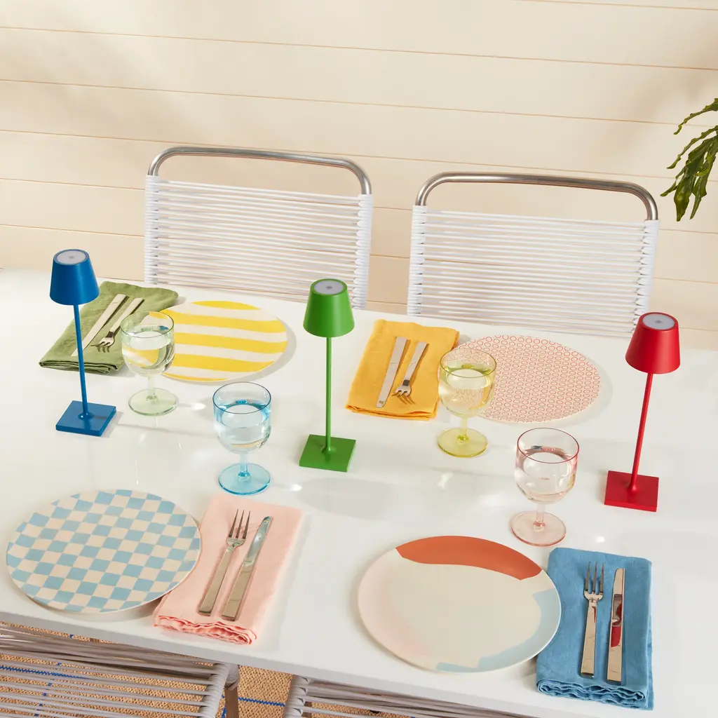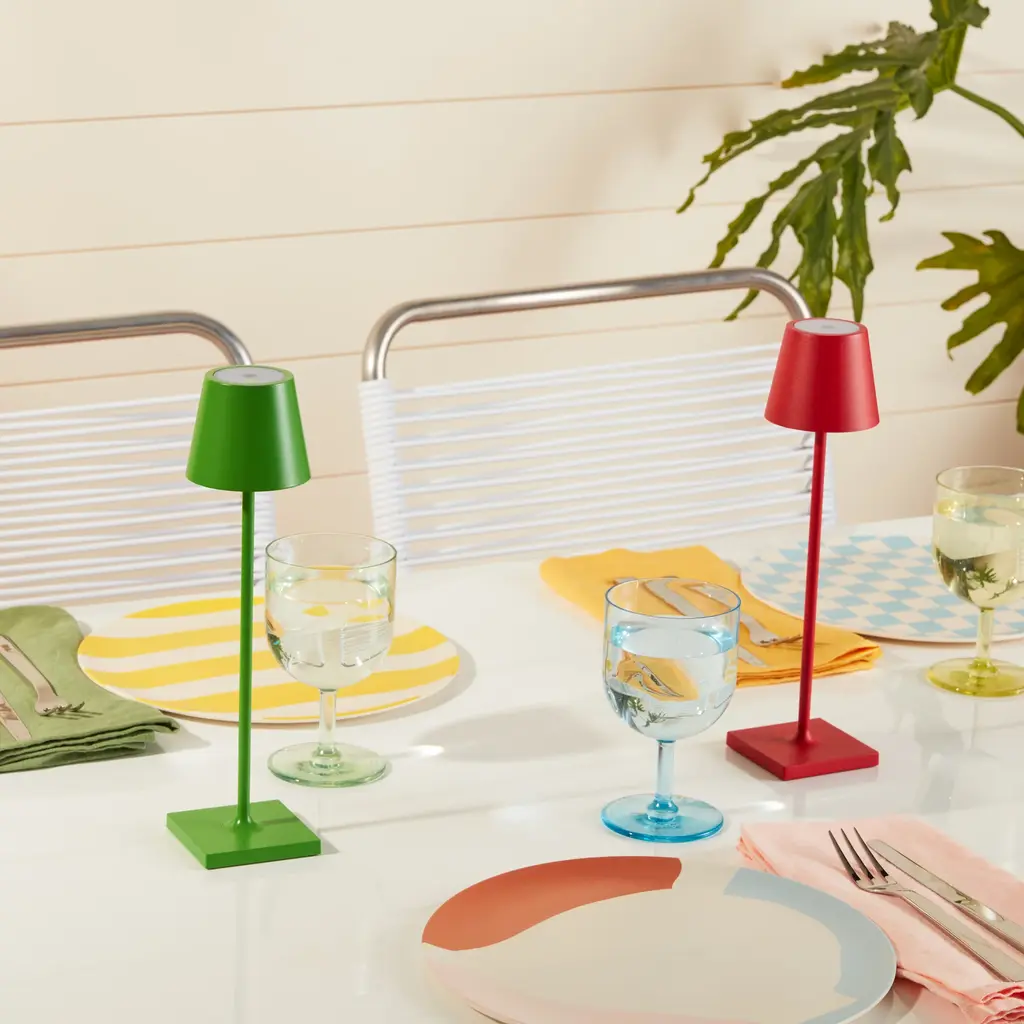 Small, chic and endlessly portable, the Poldina is a rechargeable design with a colorfully painted aluminum body. It provides mood light wherever you need it with a polycarbonate diffuser and LED light source. The Poldina is switched on and off with a touch button on top of the diffuser. The button can also be used as a dimmer and also to adjust the light’s color temperature from warm to cool. Its IP65 protection allows you to use it outdoors as well as indoors. The Poldina Micro Portable Lamp charges via the included contact charging base which can be used with a USB outlet or standard outlet (adaptor not included) and provides up to eight hours of light per charge. It measures 10.8h x 2.8"diam.