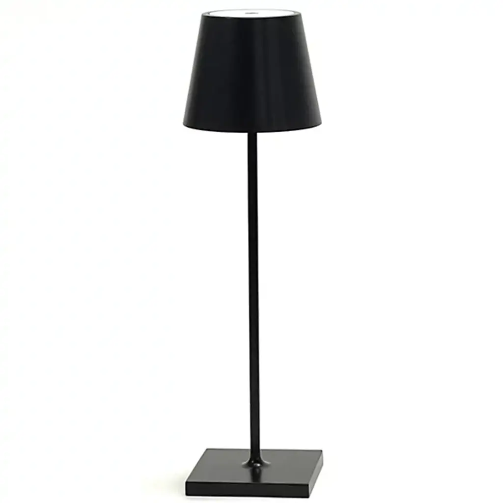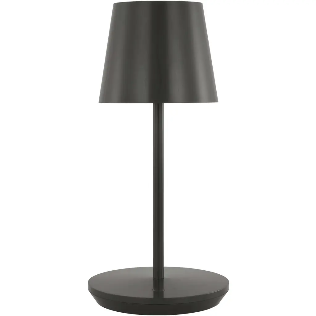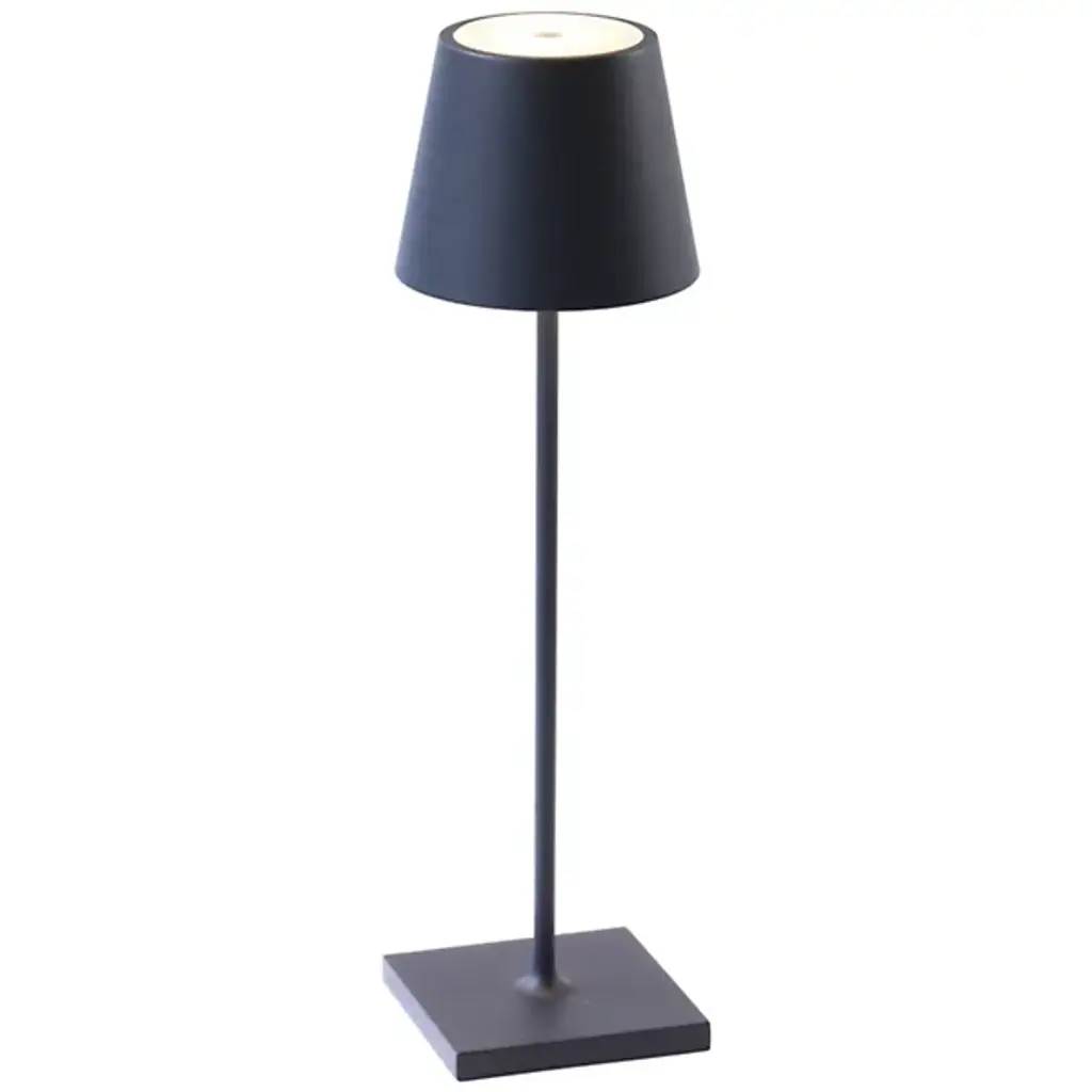 This ingenious design lets you bring the classic look and illumination of a table lamp to any room in the house, no cords required. Made of green-finished aluminum, the clean-lined lamp fashions a modern silhouette with a slender tube and petite taper shade. An integrated LED bulb turns on and dims with the touch of a finger and offers up to nine hours of illumination. To recharge, return the battery-operated lamp to its contact induction charging base. Thanks to its durable powdercoat finish, the dark green lamp can be used indoors or out and is bathroom safe.