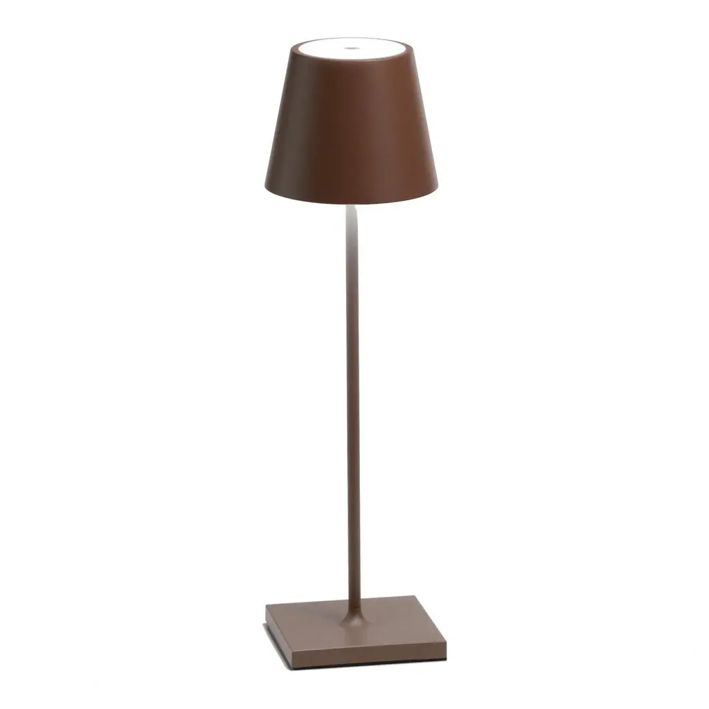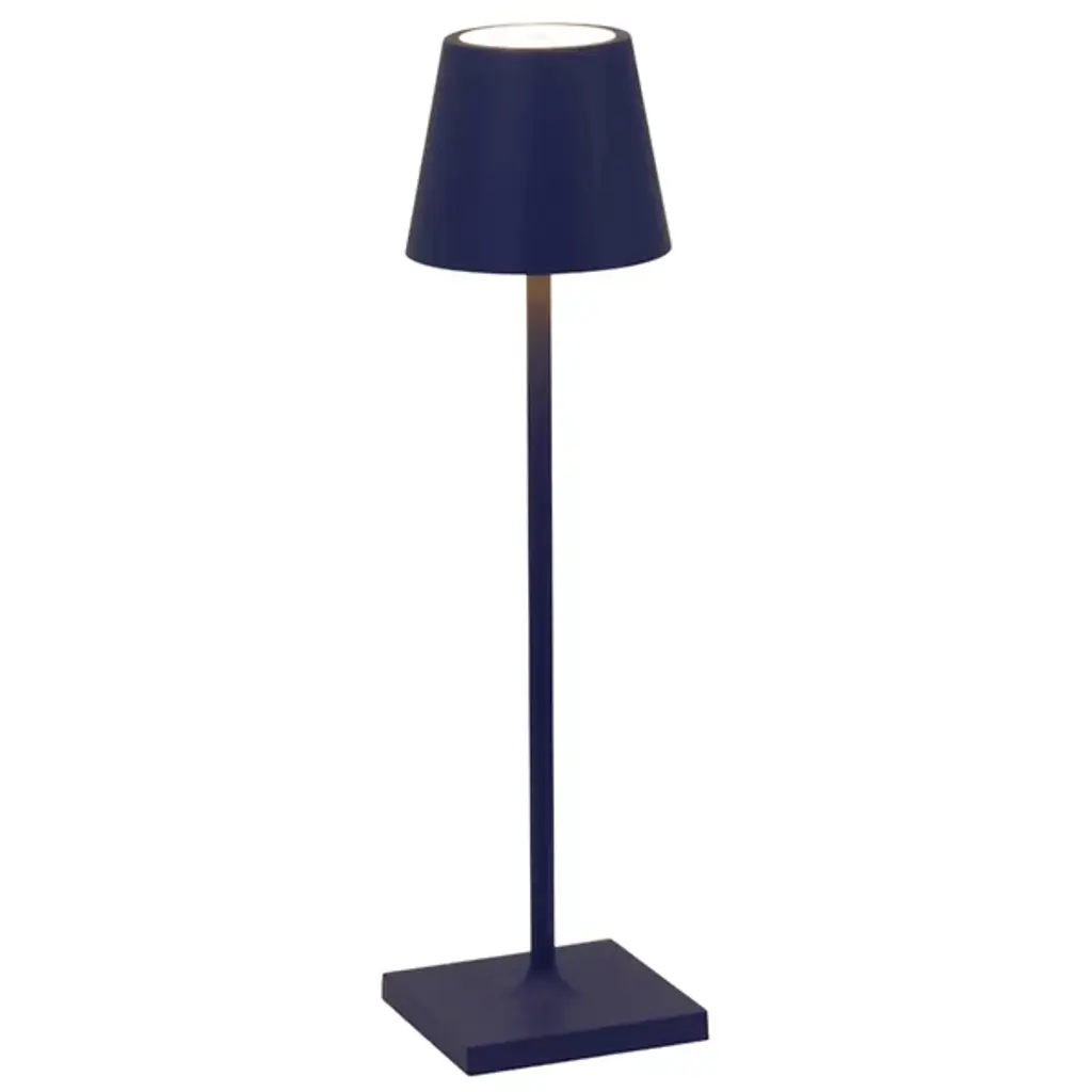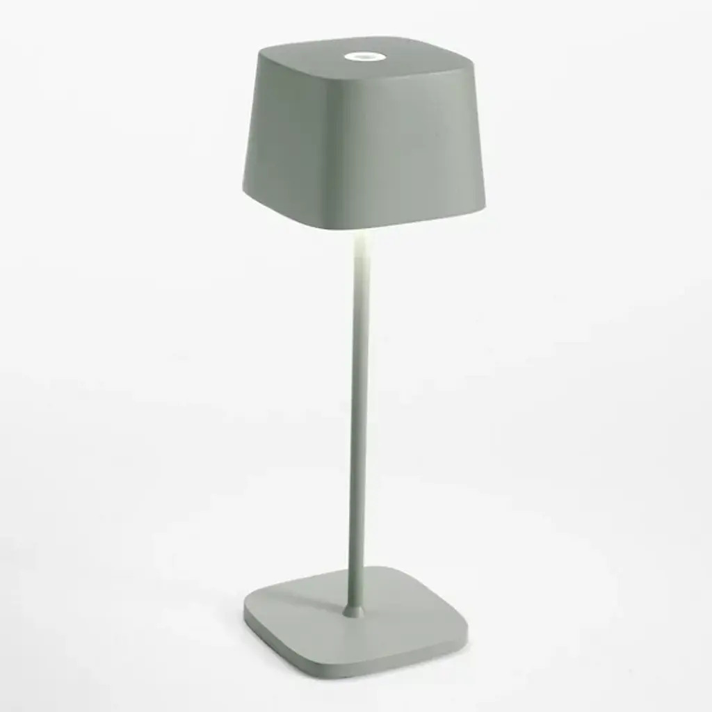 This ingenious design lets you bring the classic look and illumination of a table lamp to any room in the house, no cords required. Made of green-finished aluminum, the clean-lined lamp fashions a modern silhouette with a slender tube and petite taper shade. An integrated LED bulb turns on and dims with the touch of a finger and offers up to nine hours of illumination. To recharge, return the battery-operated lamp to its contact induction charging base. Thanks to its durable powdercoat finish, the dark green lamp can be used indoors or out and is bathroom safe.
