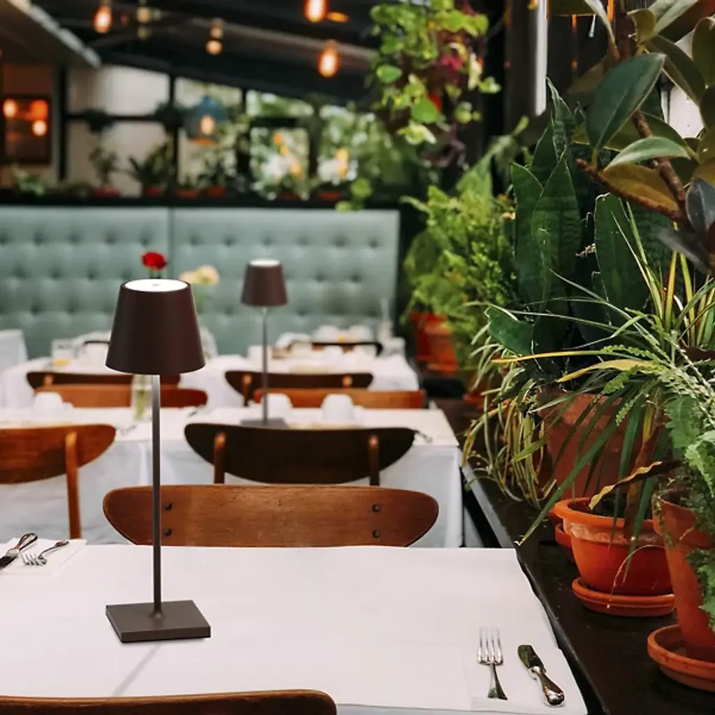 The Poldina Pro Rechargeable LED Table Lamp from Zafferano America represents Italian minimalist design philosophy applied to portable lighting. The design draws inspiration from traditional table lamps but strips away unnecessary elements, leaving only essential geometric forms. Constructed from lightweight metal, its conical shade paired with a linear stem creates clean proportions that reference mid-century lighting archetypes while addressing contemporary mobility needs. The rechargeable LED technology eliminates cord dependency, allowing the lamp to function as both a stationary and portable source of illumination.