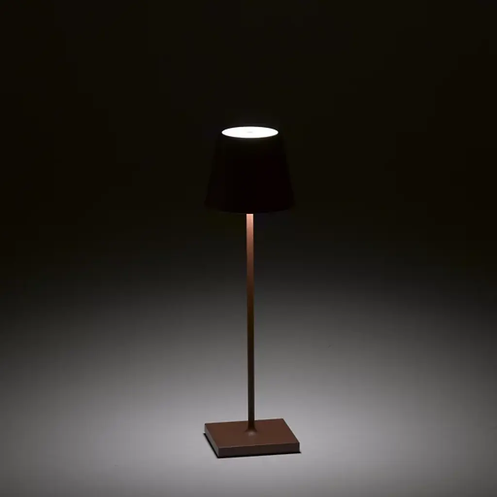 The Poldina Pro Rechargeable LED Table Lamp from Zafferano America represents Italian minimalist design philosophy applied to portable lighting. The design draws inspiration from traditional table lamps but strips away unnecessary elements, leaving only essential geometric forms. Constructed from lightweight metal, its conical shade paired with a linear stem creates clean proportions that reference mid-century lighting archetypes while addressing contemporary mobility needs. The rechargeable LED technology eliminates cord dependency, allowing the lamp to function as both a stationary and portable source of illumination.