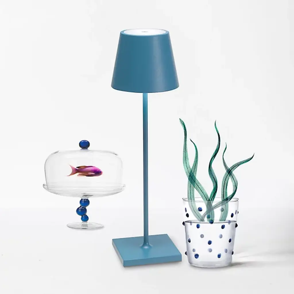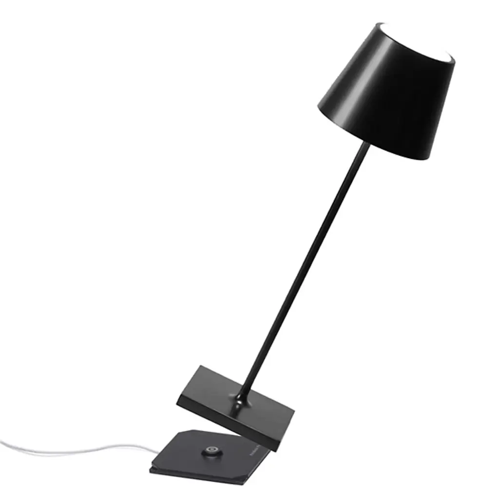 The Poldina Pro Rechargeable LED Table Lamp from Zafferano America represents Italian minimalist design philosophy applied to portable lighting. The design draws inspiration from traditional table lamps but strips away unnecessary elements, leaving only essential geometric forms. Constructed from lightweight metal, its conical shade paired with a linear stem creates clean proportions that reference mid-century lighting archetypes while addressing contemporary mobility needs. The rechargeable LED technology eliminates cord dependency, allowing the lamp to function as both a stationary and portable source of illumination.