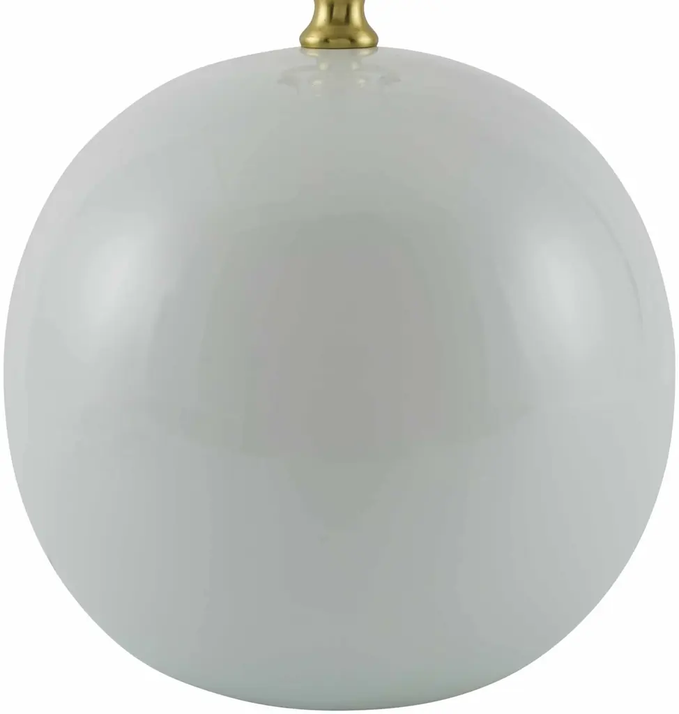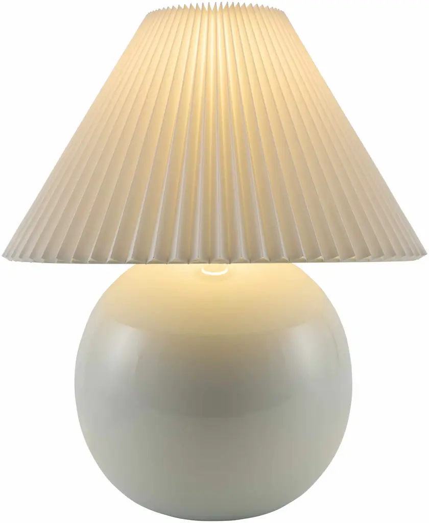 Collection: Policarpa Colors: White, Metallic - Brass, Translucent Material: Body: Ceramic / Shade (Outside): Polyester / Finial: Iron Styles: Traditional Made In: China Lighting Type: Accent Table Lighting Shade Material: Polyester Shade Color: White, White Cord Length: 6' Switch Type: On/Off Number of Bulbs: 1 Socket Type: E-26 Bulb Wattage: 100W