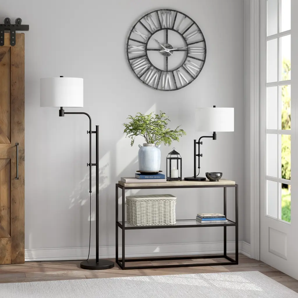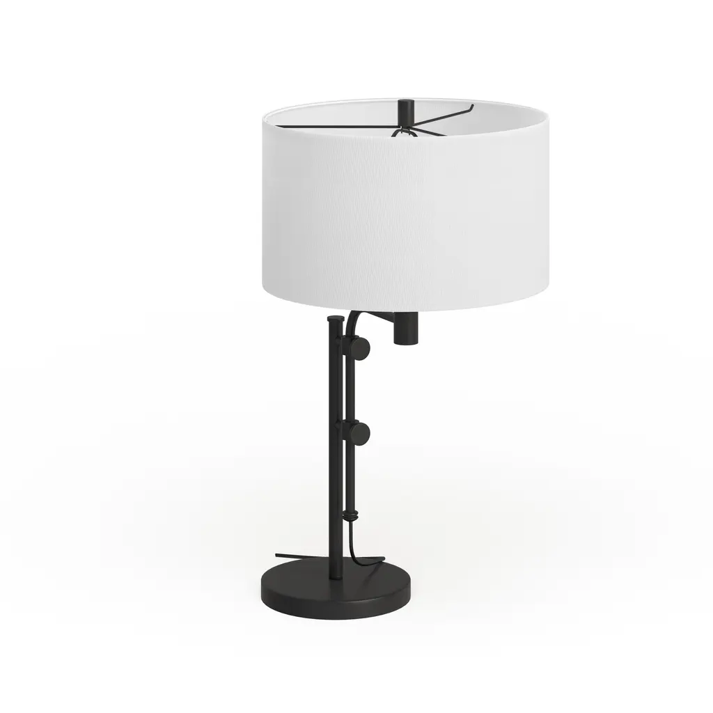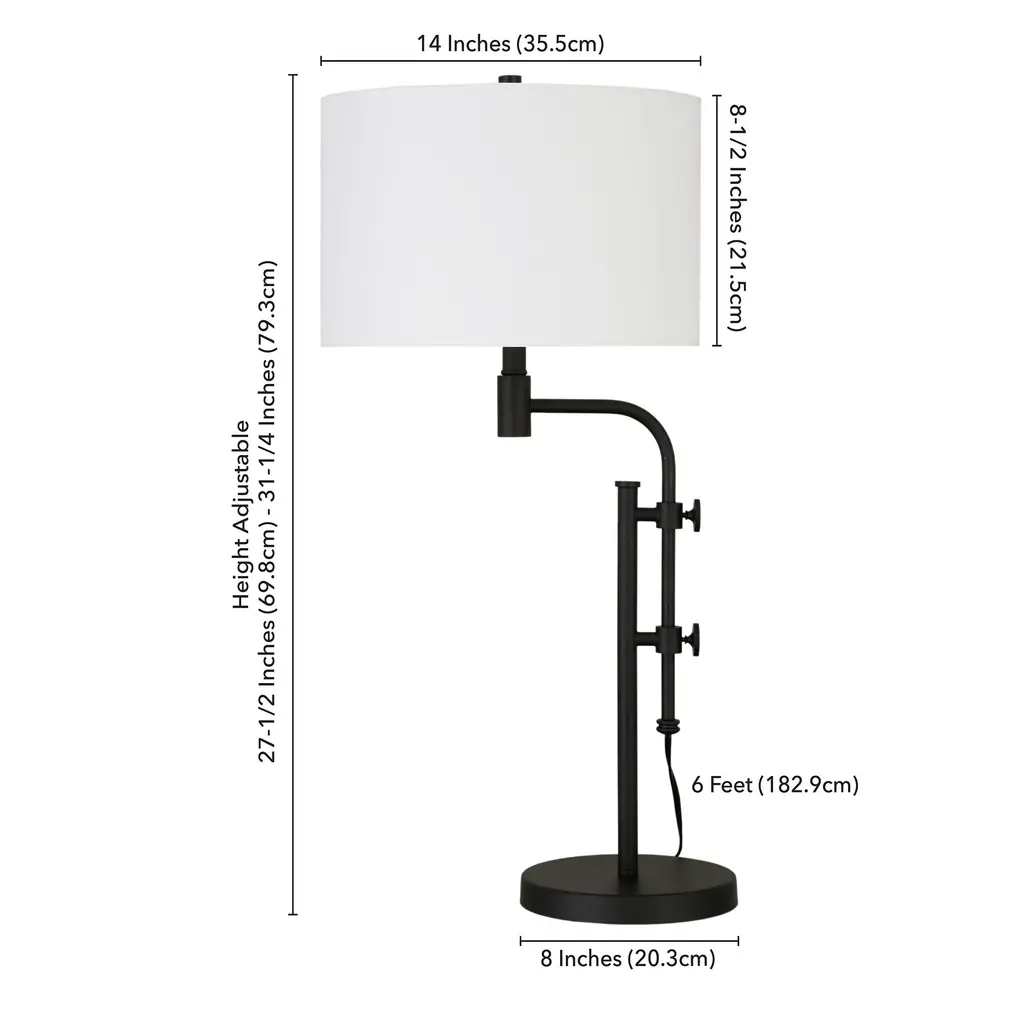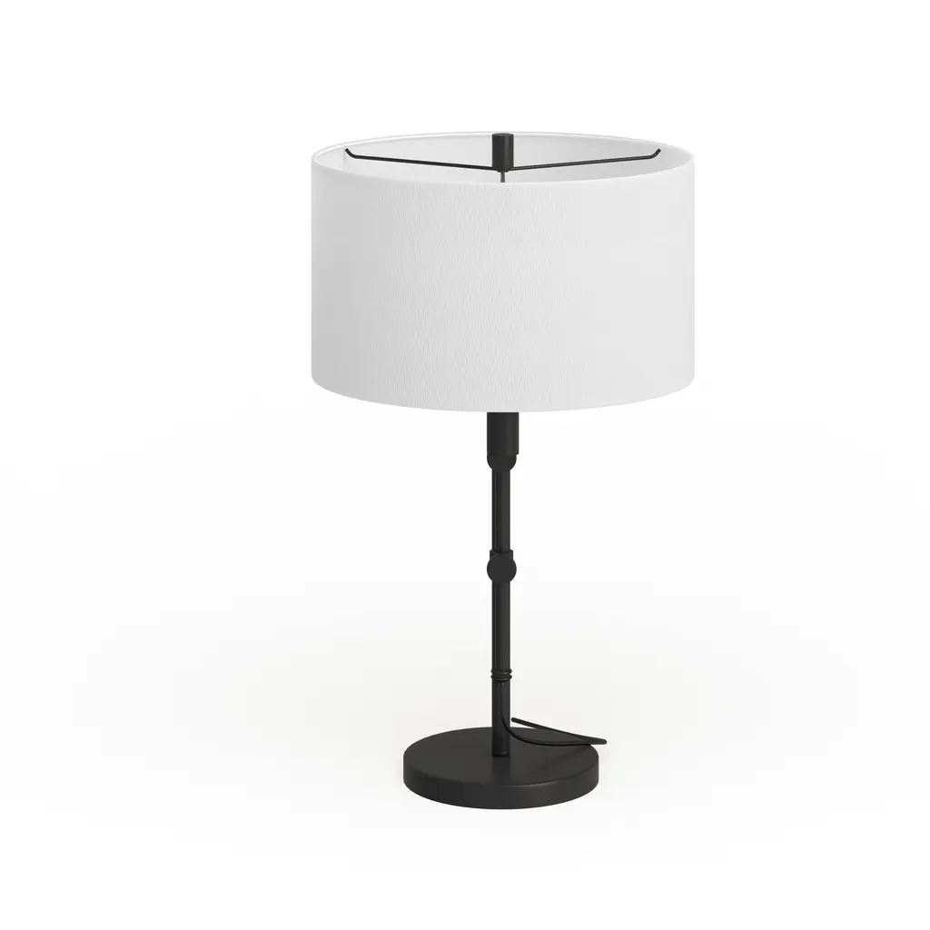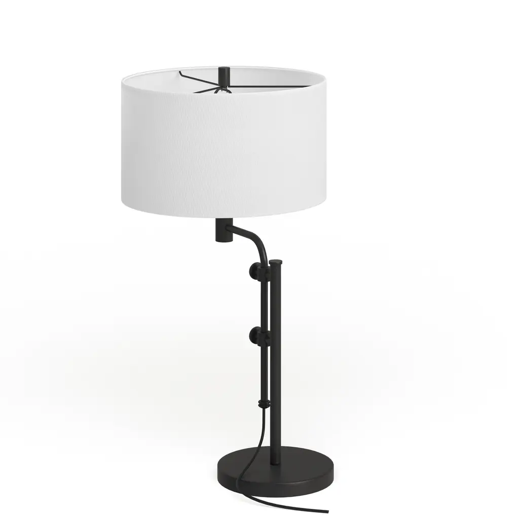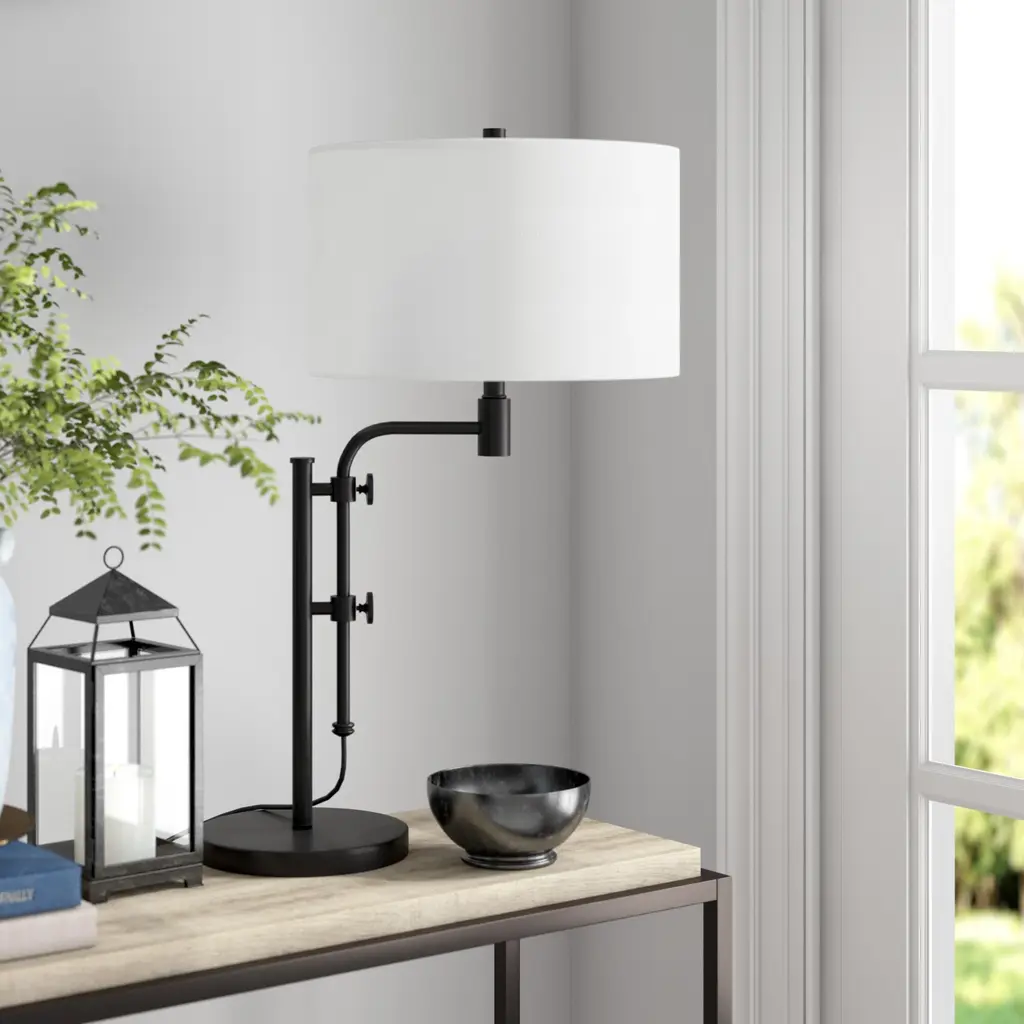 Industrial ingenuity makes for a showy accent piece in this irresistible table lamp. A round, crisp fabric shade balances atop an adjustable base for a smooth, sleek look. The artful dimension and texture of the lamp base brings a factory feel updated with a touch of style for a wonderfully unique addition to any space.Features: