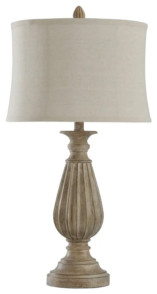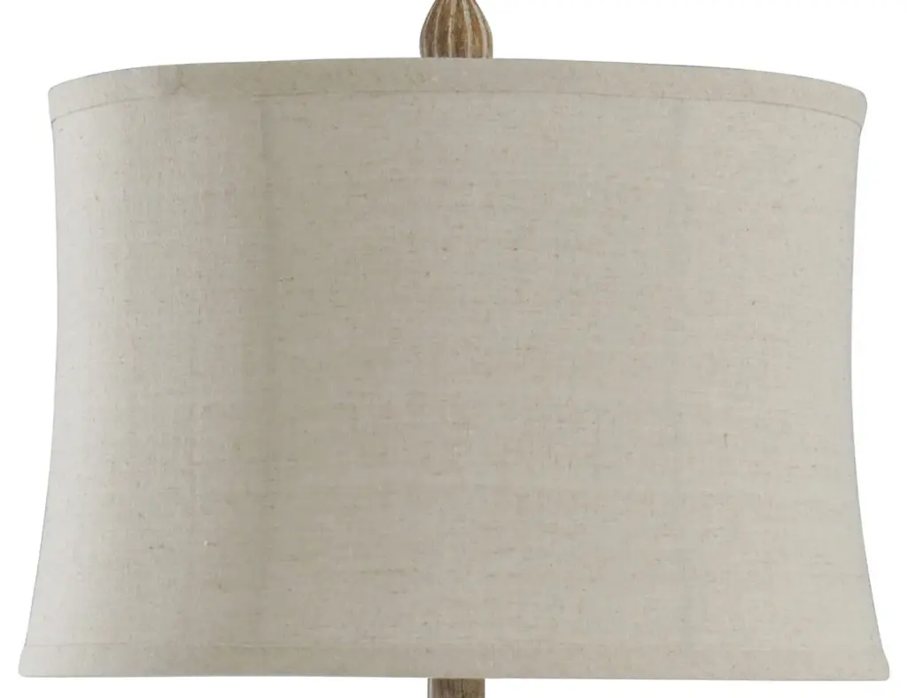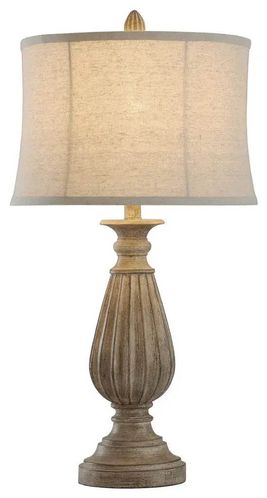 The Poly-Resin table lamp will fit with any other design you have in the family room. It comes with an easy-to-use metal turn knob and round, softback shade. The body comes with a brown finish along with a subtle black tint.Features: All hardware and metal turn knob in brush nickel finishA handpainted finish means each piece is unique, with possible slight variations. No two lamps are exactly alike.Finish: Brown with Black TintShade Finish: BeigeMaterial: Poly Resin,CrystalShade Material: Softback FabricLength: 15 inchesWidth: 15 inchesHeight: 29 inchesVoltage: 120VWattage: 100Safety Rating: Dry Location - This item is rated for dry locations, meaning it can be used in an indoor area that is not normally subject to dampness. May include a location subject to temporary dampness provided ventilation is adequate to prevent any accumulation of moisture such as the bathroomBulb(s) Included: NoBulb Type: IncandescentNumber of Bulbs: 1Due to lighting and monitor differences, actual colors and finishes may vary slightly from what appears online.