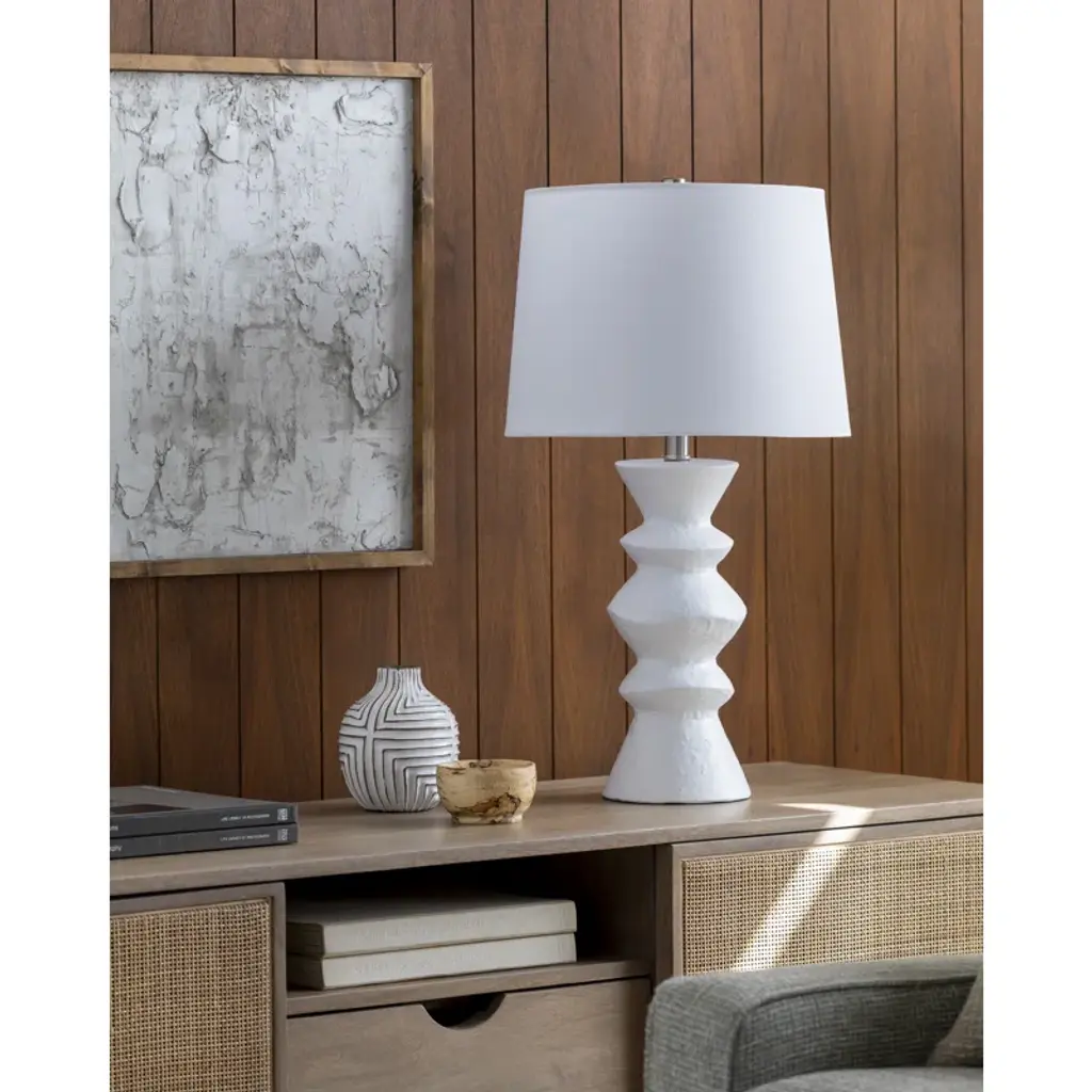 Light up any room in your home with the Pomona Accent Lamp! This lamp is crafted from ceramic and features a stylish linen lamp shade for a modern touch. Perfectly sized to fit on end tables, nightstands, and other small surfaces, this accent lamp is sure to make a statement in your living space. Wipe clean with a dry cloth for easy maintenance. With its sleek design, the Pomona Accent Lamp makes an ideal addition to any contemporary decor.
