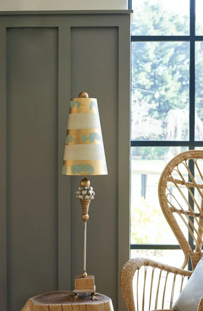 Accent your bedside nightstand or living room side table with the Pompadour Luxe Table Lamp. Eye-catching in design, the Pompadour Luxe Table Lamp features whimsical molded duck feet, a gold and cream striped shade and distressed acid etching. With metallic hues and an interesting shape, the Pompadour Luxe Table Lamp will effortlessly complement your eclectic home decor.UL Certified: YesLightbulbs Included: NoNumber of Lights: 1Wattage: 100WBulb Type: Edison