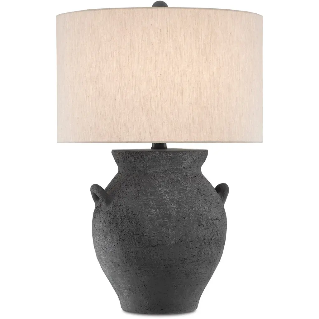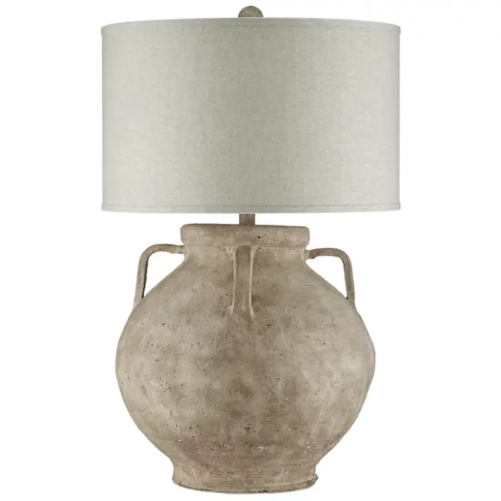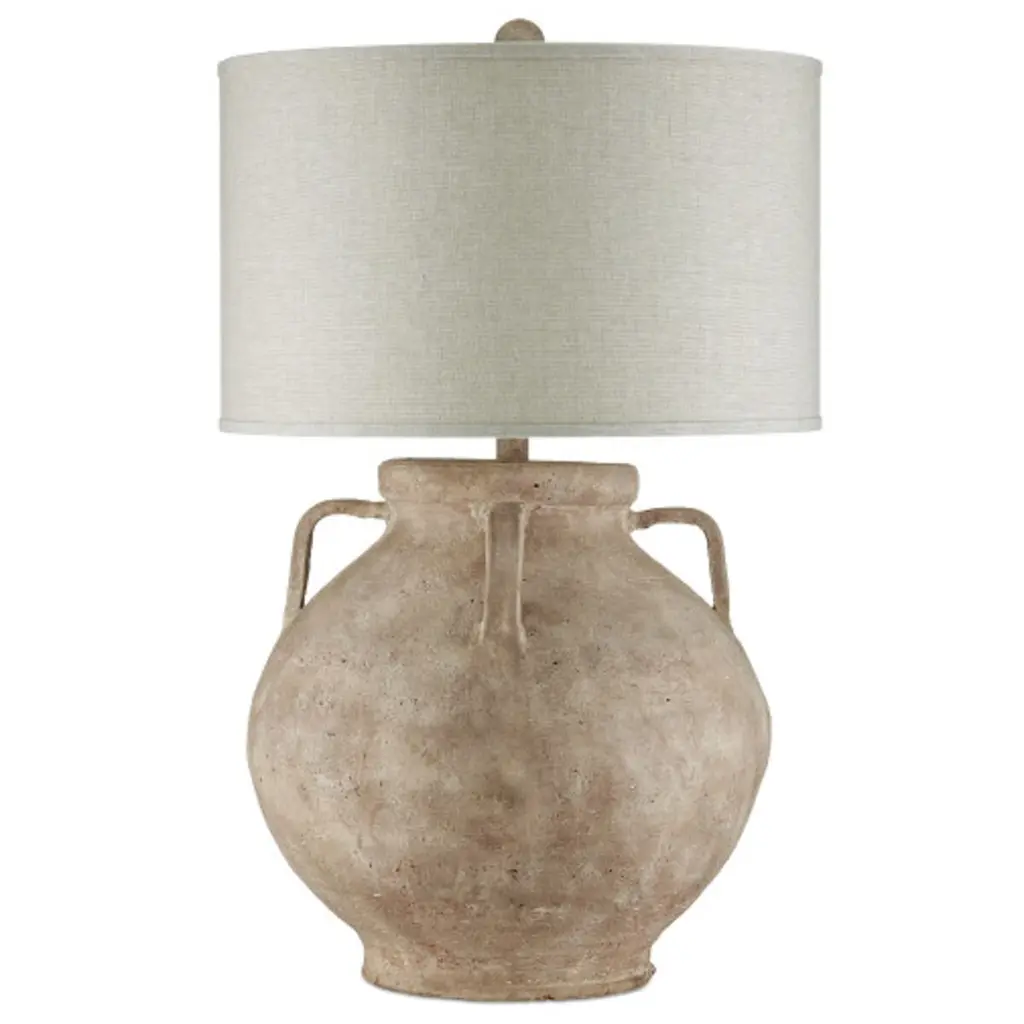 The Pompeii Table Lamp from Currey & Company showcases artisanal terracotta craftsmanship with a weathered surface that mimics ancient artifacts. Natural swirls and subtle texturing create an aged appearance that speaks to historical influences. The substantial base supports a tailored drum shade with coordinating trim. This generously scaled lamp brings archaeological intrigue to contemporary spaces. Each piece exhibits unique variations in the handcrafted surface treatment, ensuring no two lamps are identical.