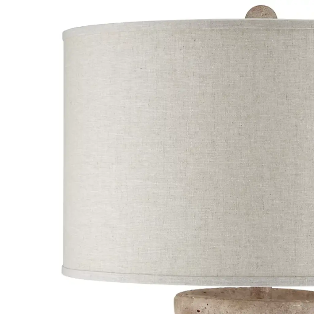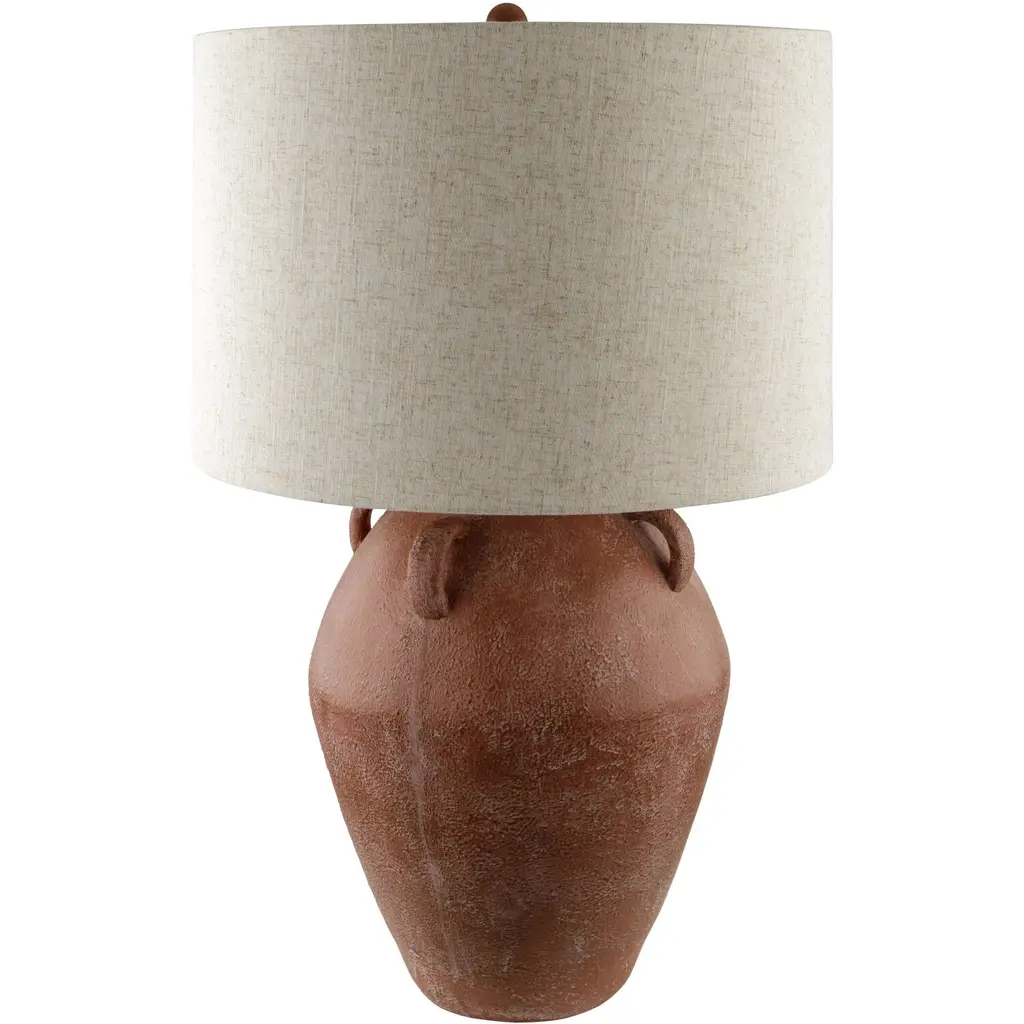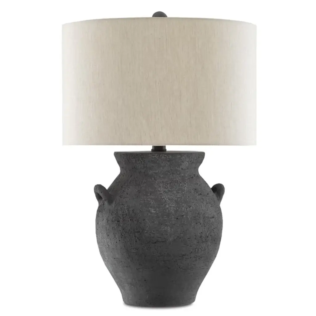 The Pompeii Table Lamp from Currey & Company showcases artisanal terracotta craftsmanship with a weathered surface that mimics ancient artifacts. Natural swirls and subtle texturing create an aged appearance that speaks to historical influences. The substantial base supports a tailored drum shade with coordinating trim. This generously scaled lamp brings archaeological intrigue to contemporary spaces. Each piece exhibits unique variations in the handcrafted surface treatment, ensuring no two lamps are identical.