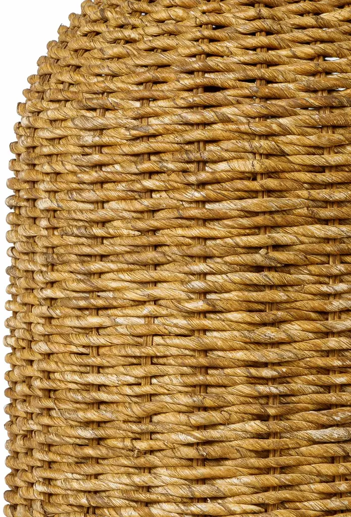 Collection: Pontresina Colors: Beige, White, Black, Metallic - Nickel Material: Body: Seagrass,Shade (Outside): Linen,Shade (Inside): Polyester,Finial: Iron Styles: Transitional,Bohemian Made In: China Lighting Type: Accent Table Lighting Shade Material: LinenPolyester Shade Color: WhiteWhite Cord Length: 6' Switch Type: 3-Way Number of Bulbs: 1 Socket Type: E-26 Bulb Wattage: 100W